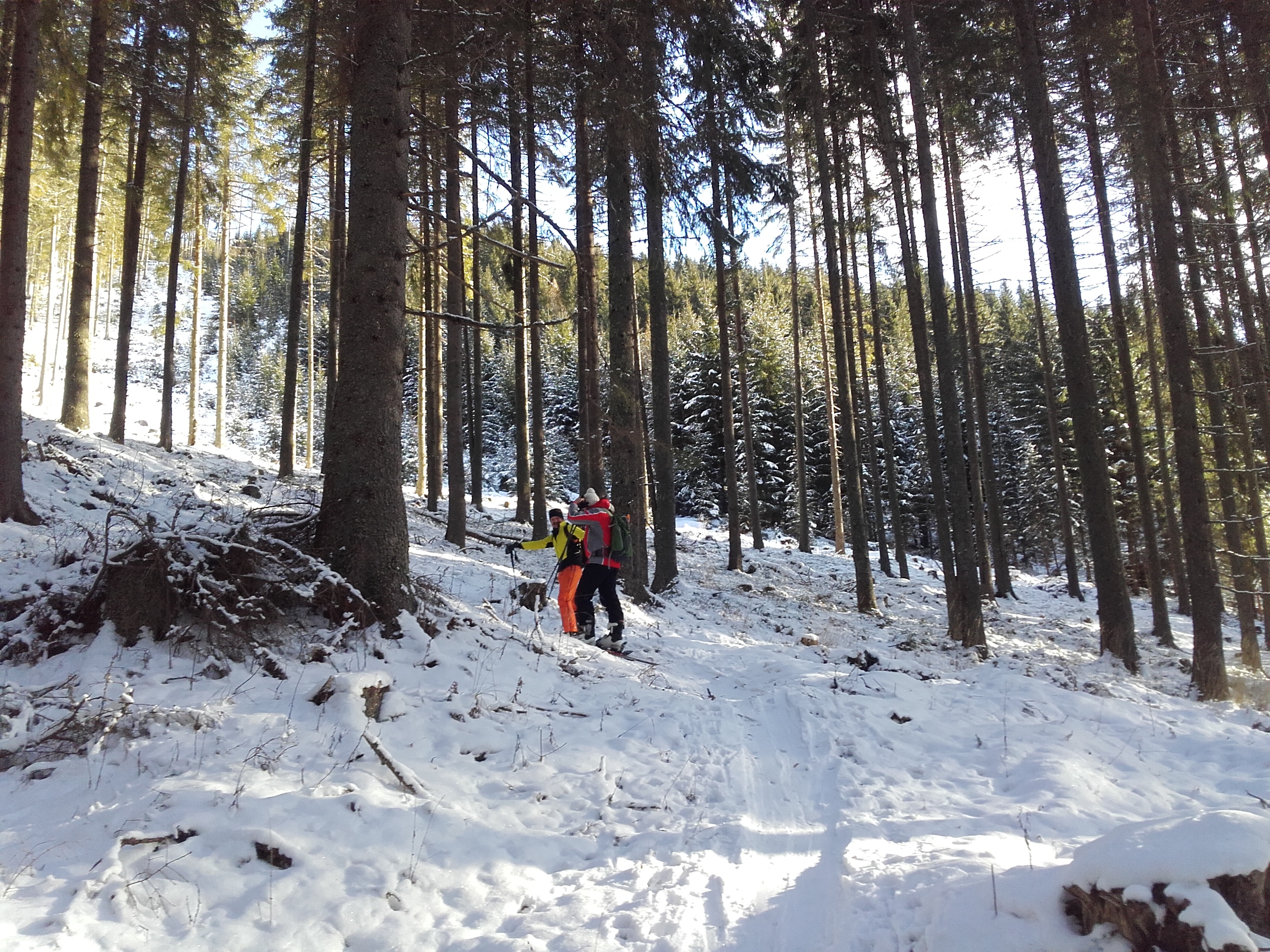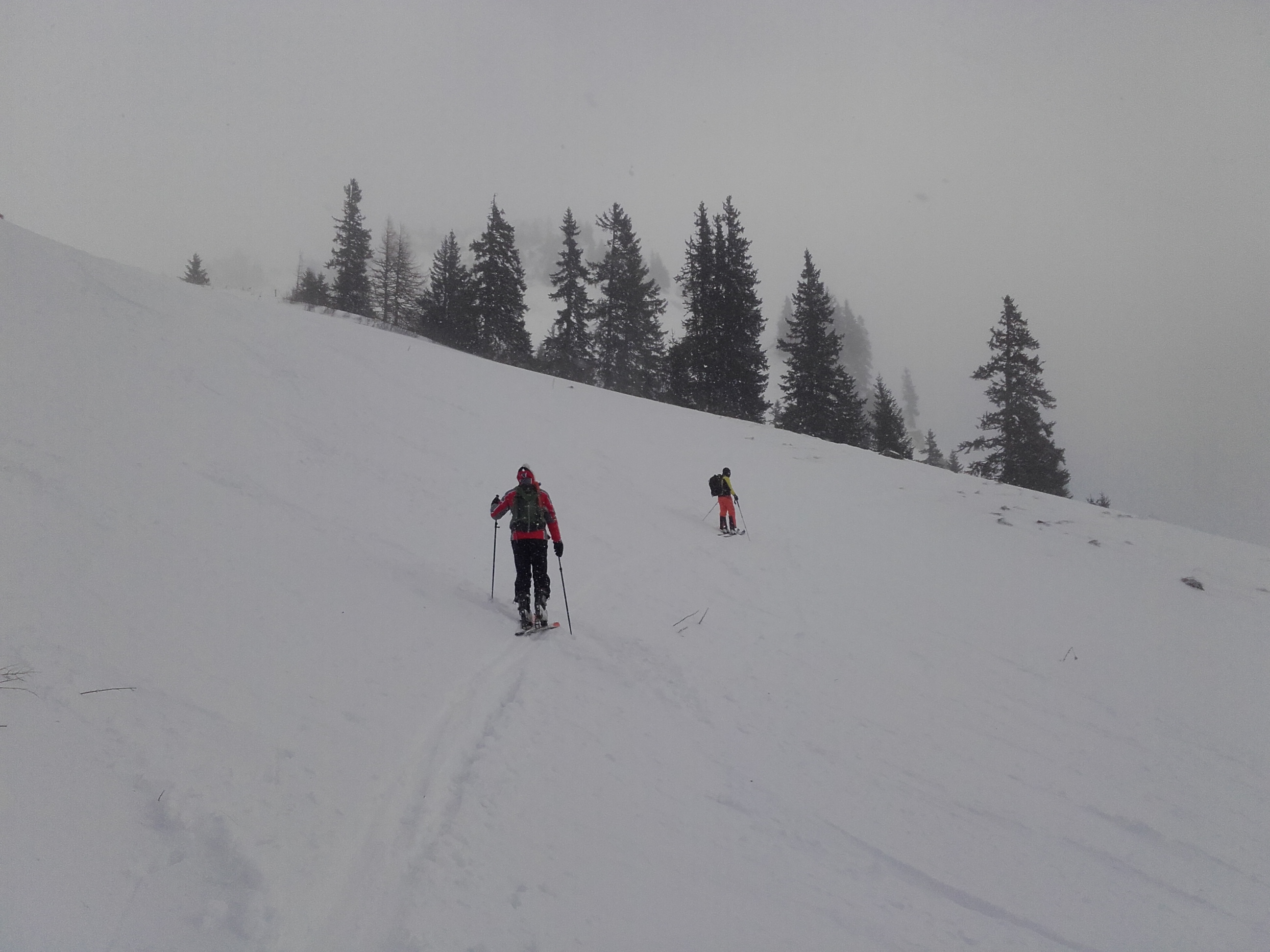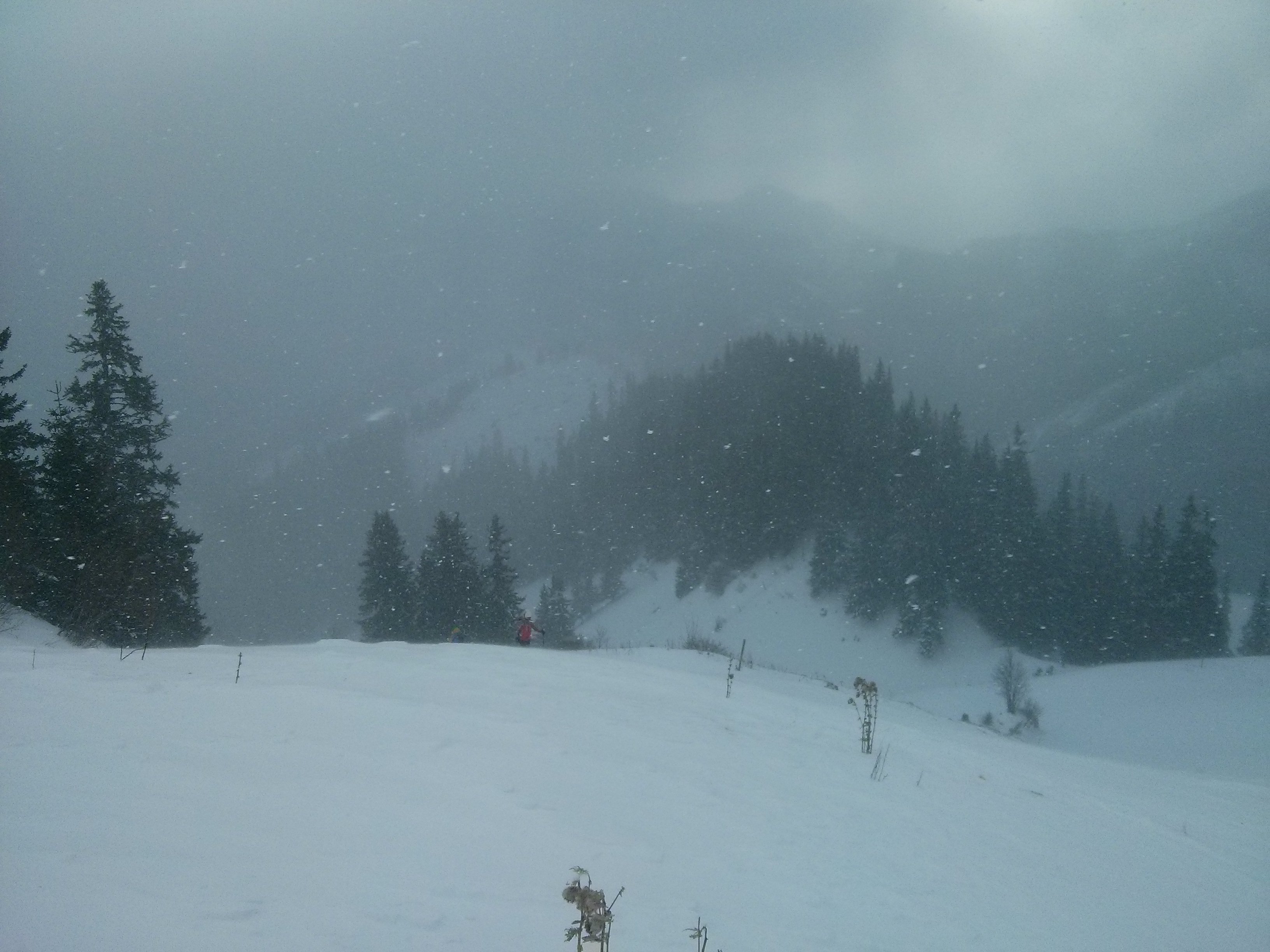 Deshalb sind wir nach etwa 650 Höhenmeter umgekehrt und zurück runter ins Tal. Der Schnee war schon ordenlich windgepresst und nicht gerade einfach zu fahren. Ausserdem fehlt der Untergrund und das macht die recht steilen Pasagen alles andere als einfach. Ben hat sich dabei den Fuss verletzte, ist aber noch gut ins Tal gekommen.