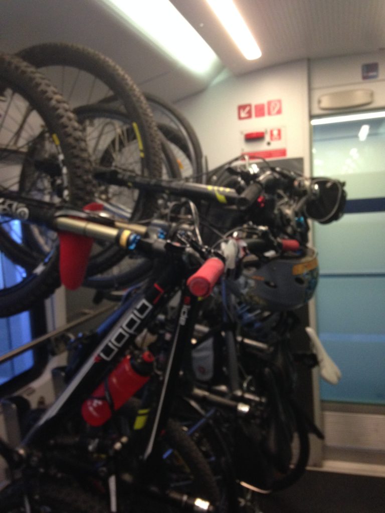 Das Abenteuer beginnt für mich in Weiz. Der Postbus-Chaufeur nimmt das Rad im Gepäckraum mit, zum Glück ist ein Fach frei. Der Railjet nach Kapfenberg verlangt eine Reservierung für die Räder und ein Ticket (insg. ca. 4 Euro/Rad). Dann von Kapfenberg auf den Seeberg wieder die gleiche Geschichte wie in Weiz.