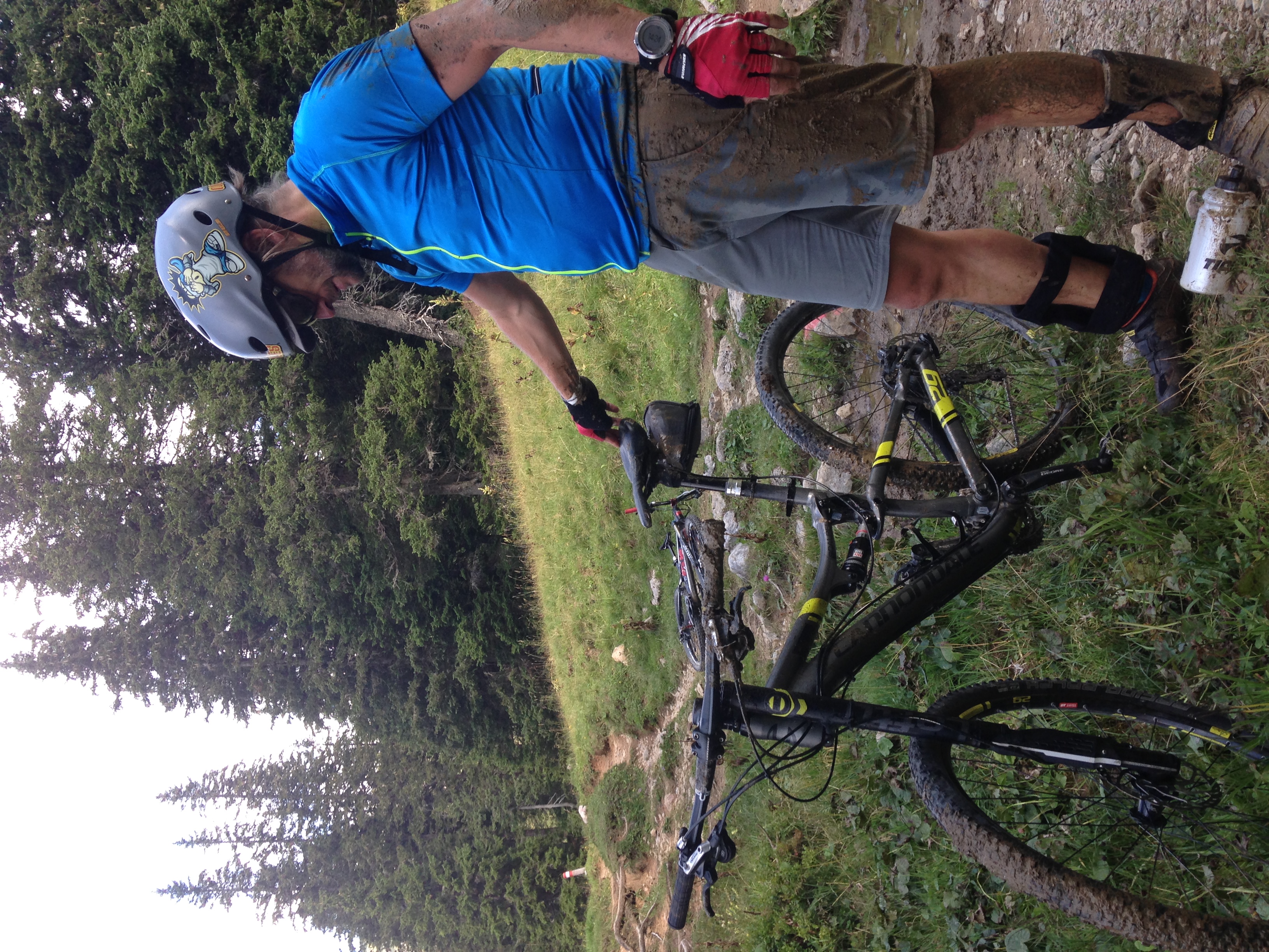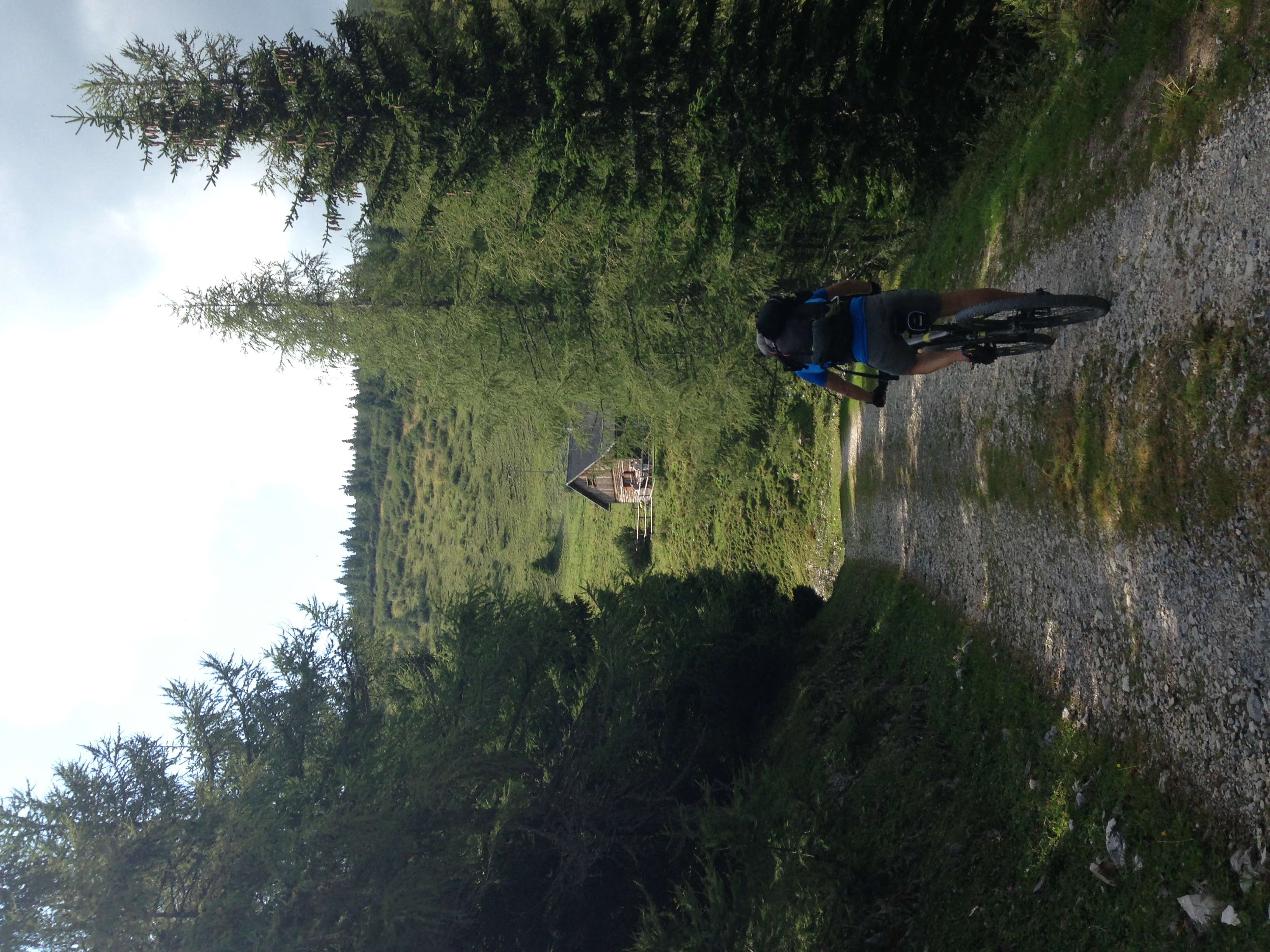 Nocheinmal rauf und runter, diesmal weniger Felsen und mehr Wurzeln. Anspruchsvoller fühlt es sich mittlerweile an, aber das liegt an der sich breit machenden Müdigkeit. Bei einer feuchten Stelle versuche ich über den Gatsch zu kommen und das Vorderrad bleibt im Morast stecken. Ich gehe über den Lenker ab und lande voll im Gatsch. Ben sieht mich noch fliegen und versorgt mich ganz geschockt. Nach eine Säuberungsaktion geht es weiter zur Sonnschienalm und die Russenstrasse hinunter. Wir treffen keinen Förster und Jäger und kommen nach mehr als 2000 Höhenmetern Abfahrt am Grünen See an. Zurück geht es dann mit dem Radl nach Bruck und von dort zurück mit dem Regionalzug (ohne Reservierung) nach Graz.
