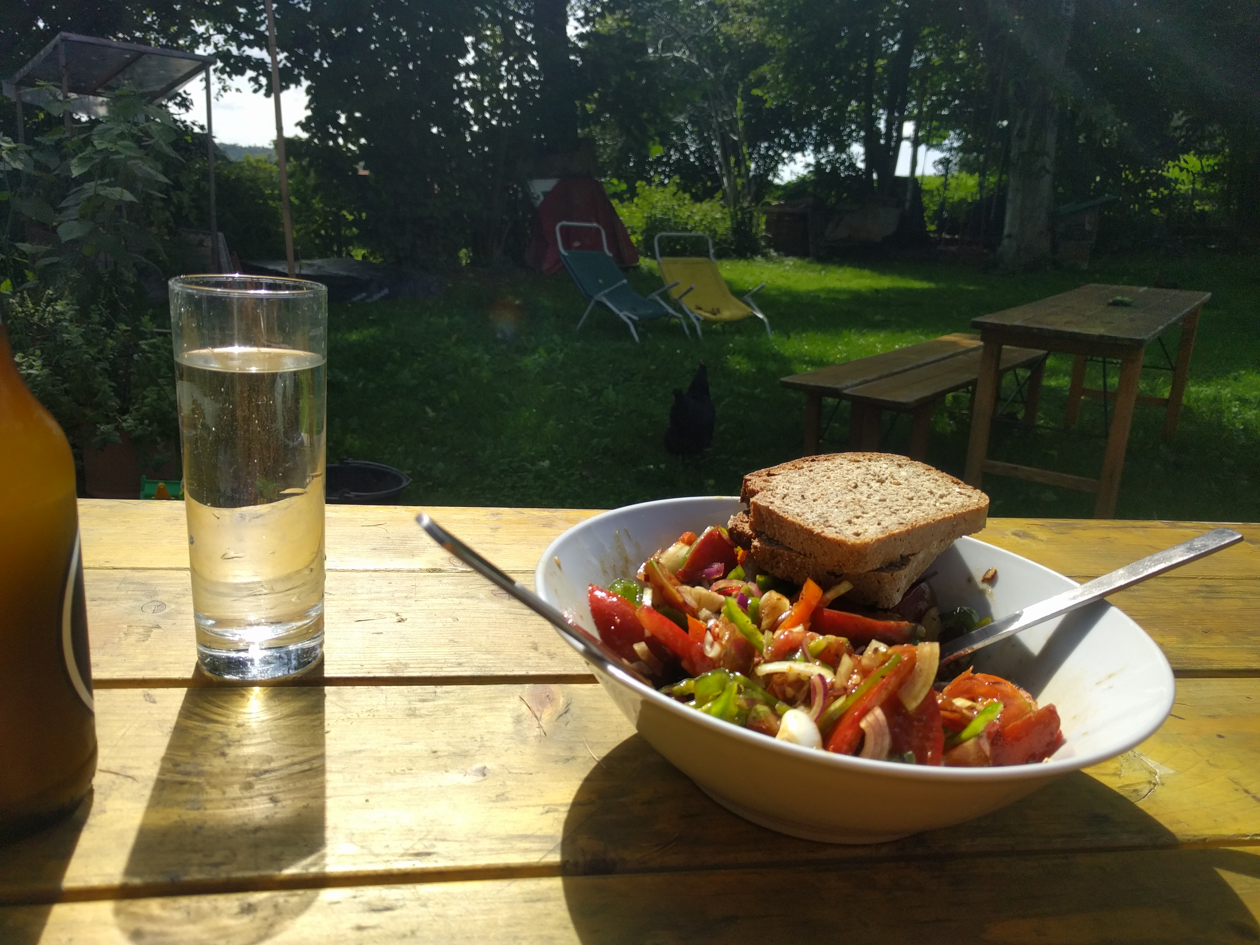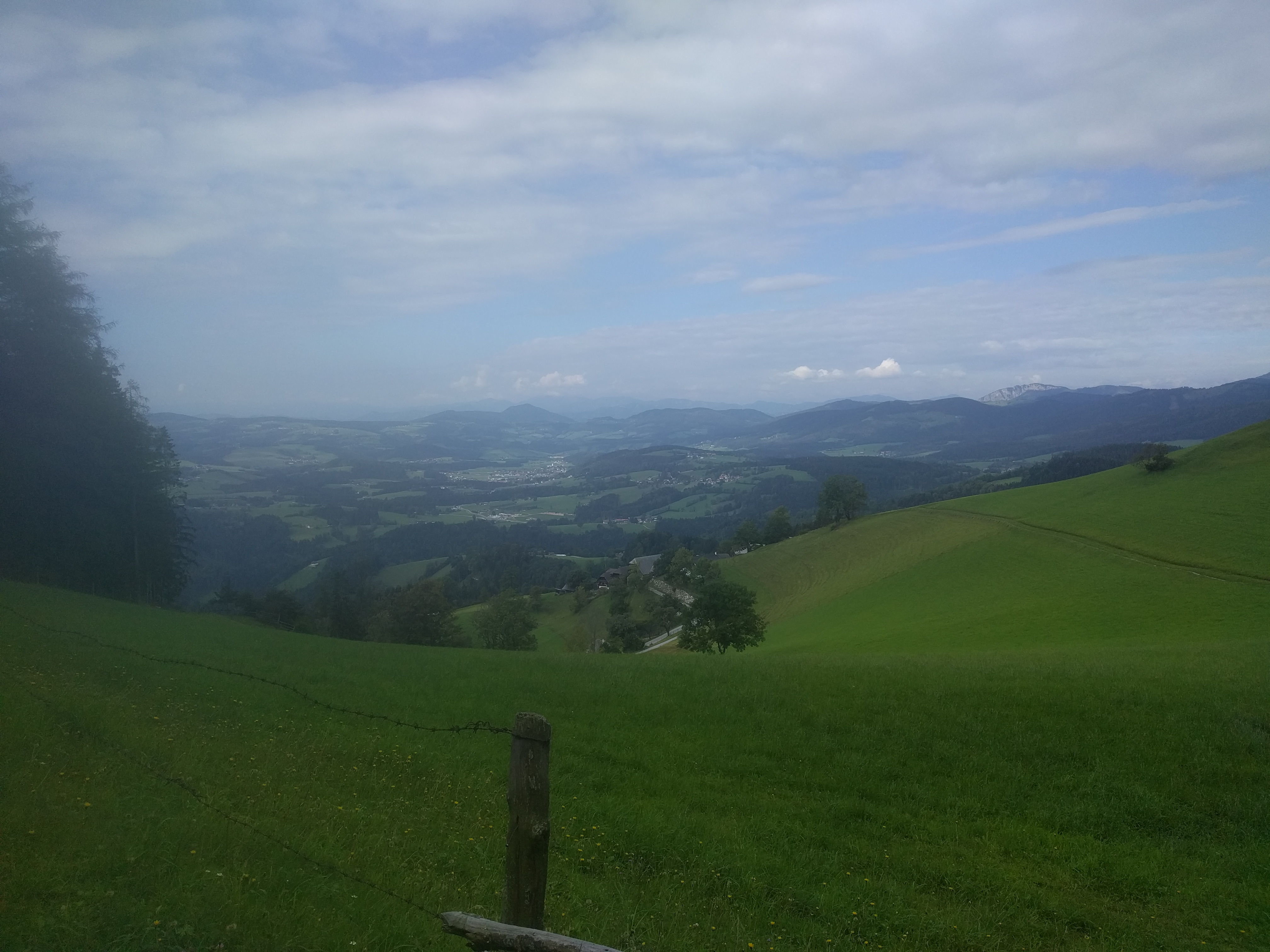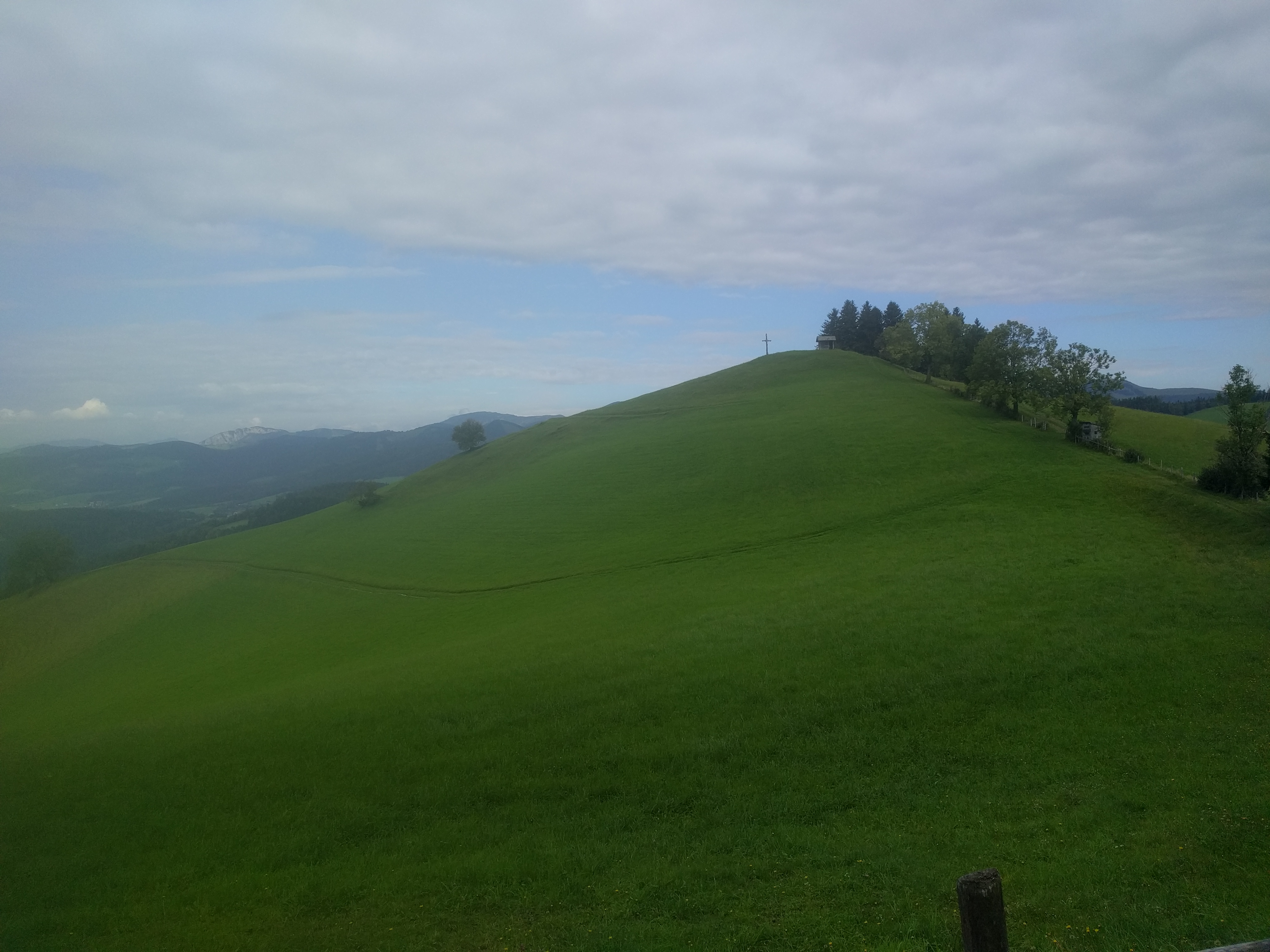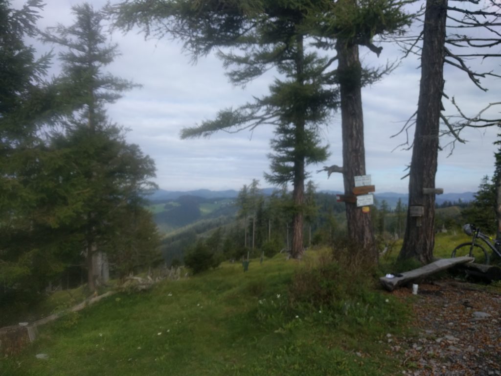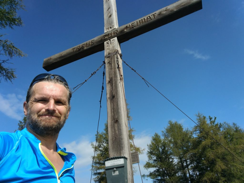 Heute geht es richtig im Flow hinauf zum Zetz und dann über den Eibisberg und Gschaid weiter auf den Patscha. Die steilen Passagen hinauf von Gschaid auf den Patscha saugen doch ordendlich an meinen Kräften und am Gipfel des Patschas bin ich dann richtig fertig. Das viele Schwimmen und Tanzen der letzten Tage machen sich doch bemerkbar ;-) und der Wanderweg hinauf ist was die Steilheit angeht grenzwertig und so steige ich doch immer wieder vom Rad, weil ich nicht genug Kraft auf den Hinterreifen bekomme oder das Vorderrad hochkommt. Die ersten Meter des Wanderwegs runter vom Gipfel sind ordendlich steil und machen Spass. Zurück wähle ich dann eine Variante und fahren nach der Vogelkäuschen wie gewohnt links über den Wanderweg hinunter bis zum ersten Bauern und dort zurück Richtung Naas und dann über den Wanderweg runter zum Landscha. Der Trail folgt dort einem langem Hohlweg und da kann man das Rad richtig laufen lassen. Runter vom Landscha fehlt mir dann die Motivation und Kraft und ich fahre über die Strasse heim, wo frischen Paradeisersalat auf mich wartet. hmmmmmm!
