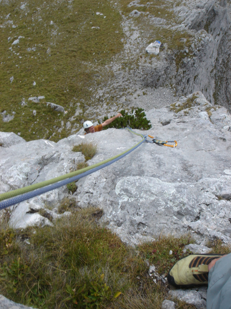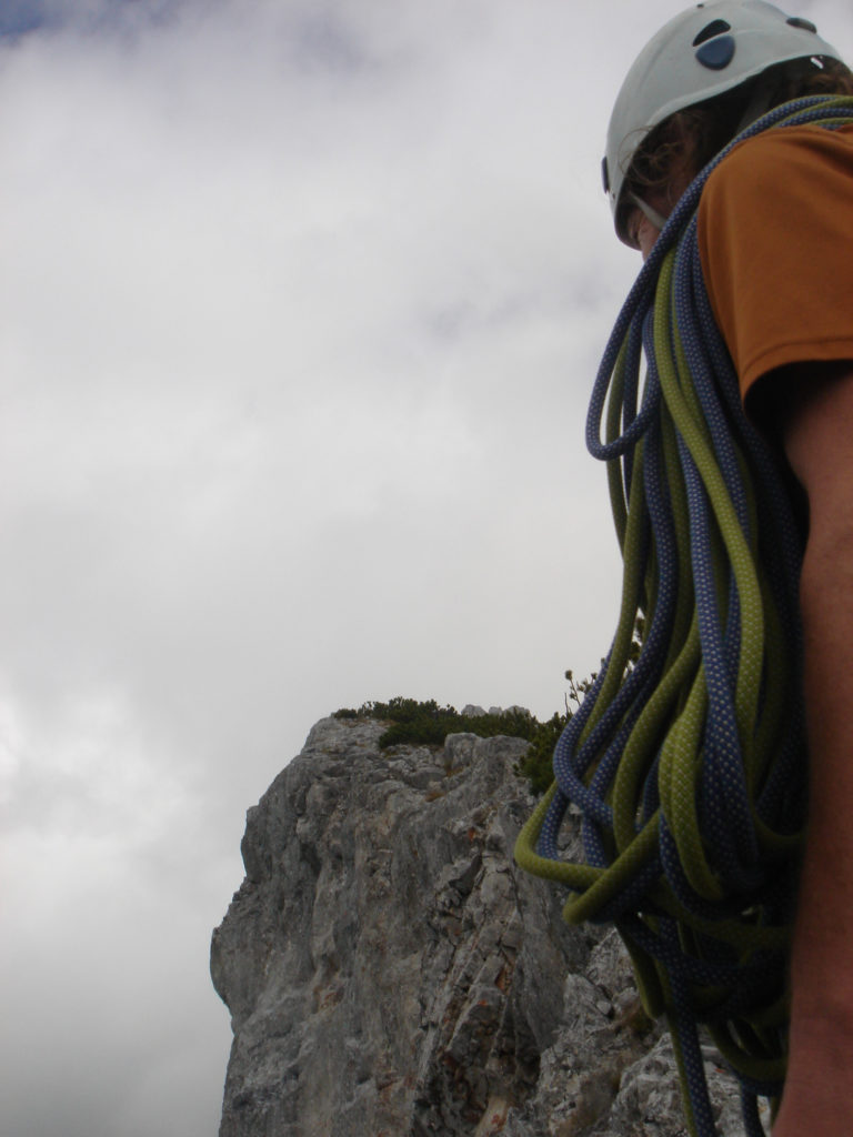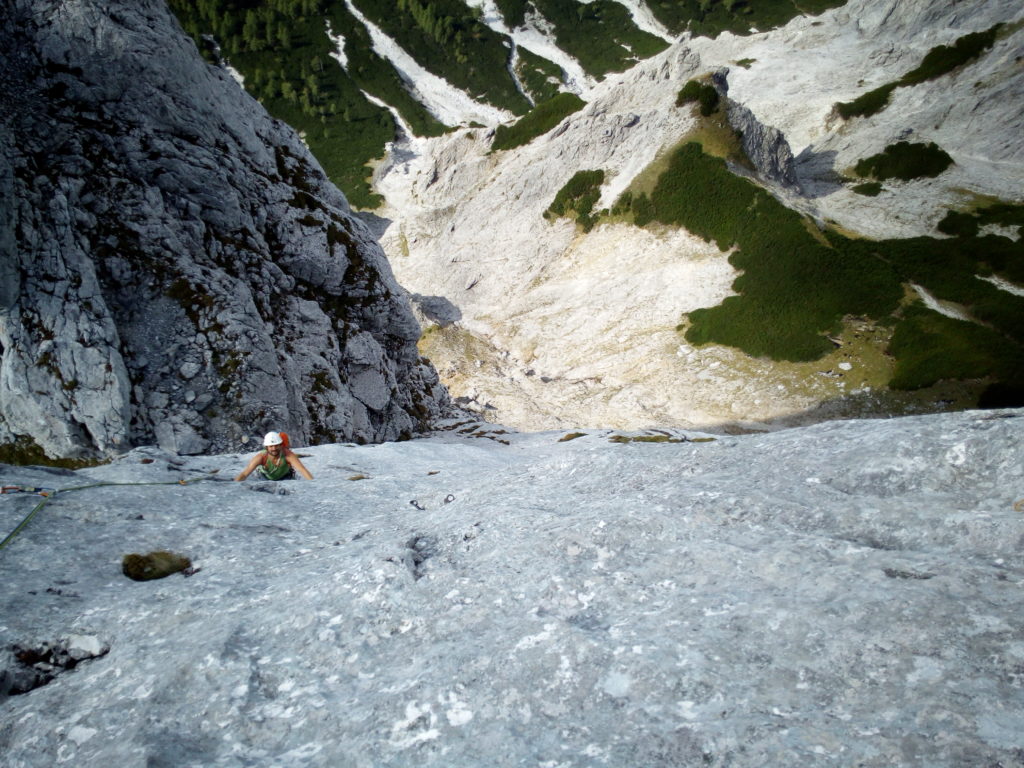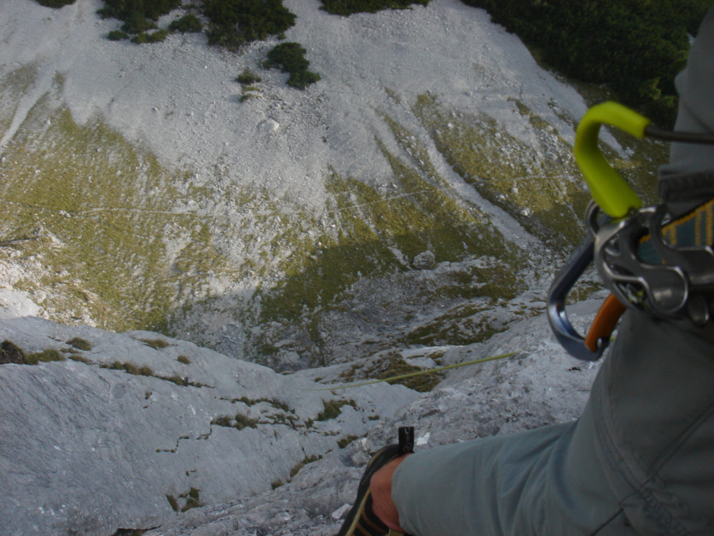 in der zweiten Seillänge (das blaue Fleckerl ist das Rucksackplatzerl)