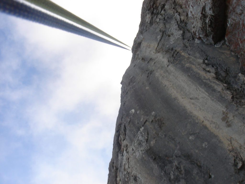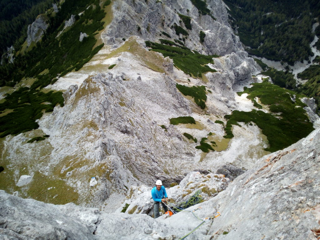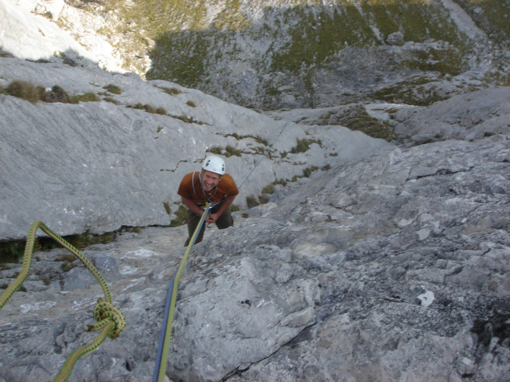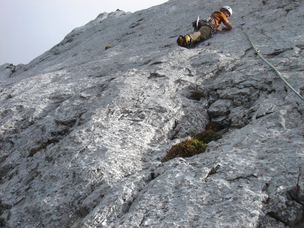 in der zweiten Seillänge (das blaue Fleckerl ist das Rucksackplatzerl)