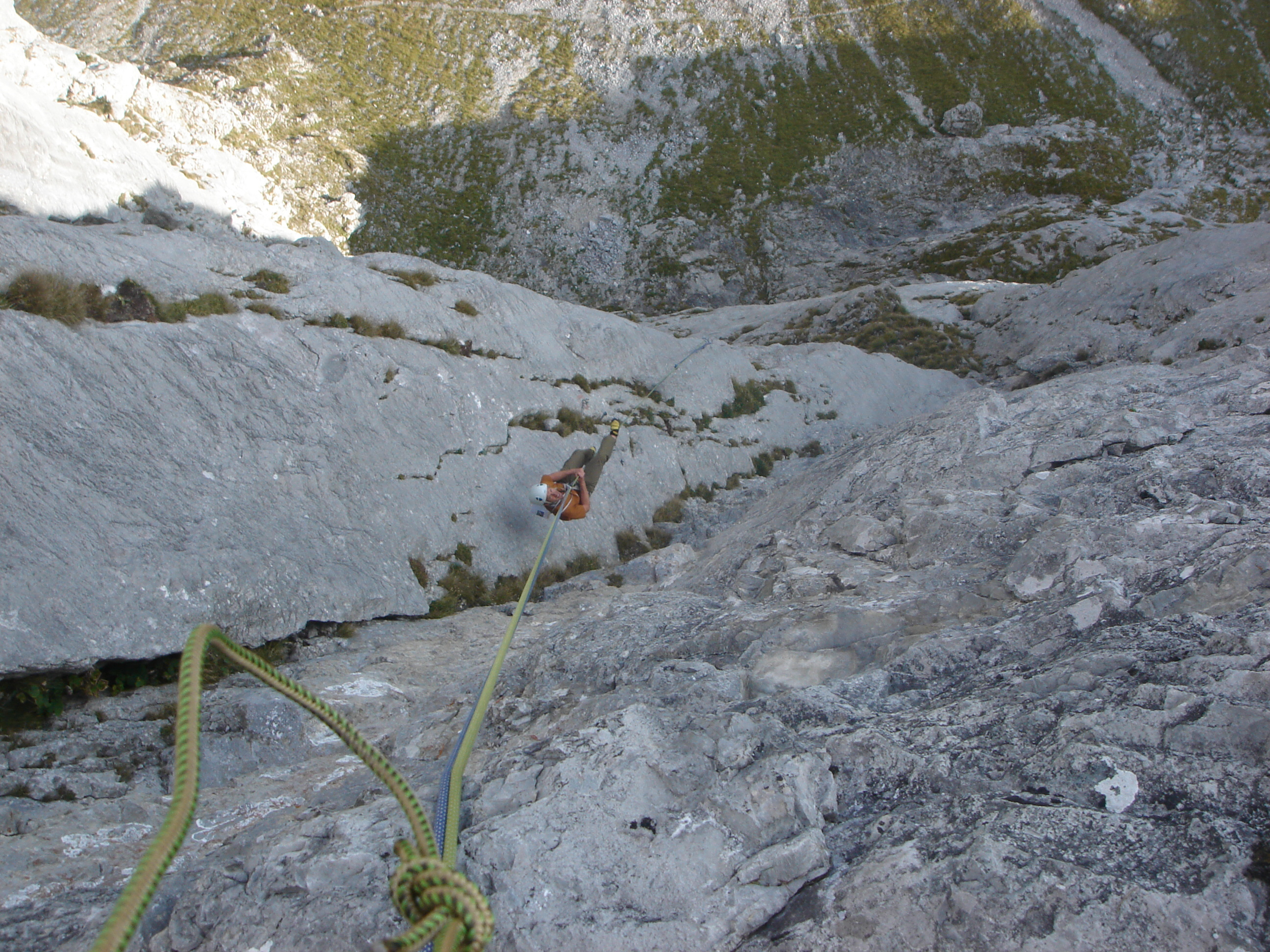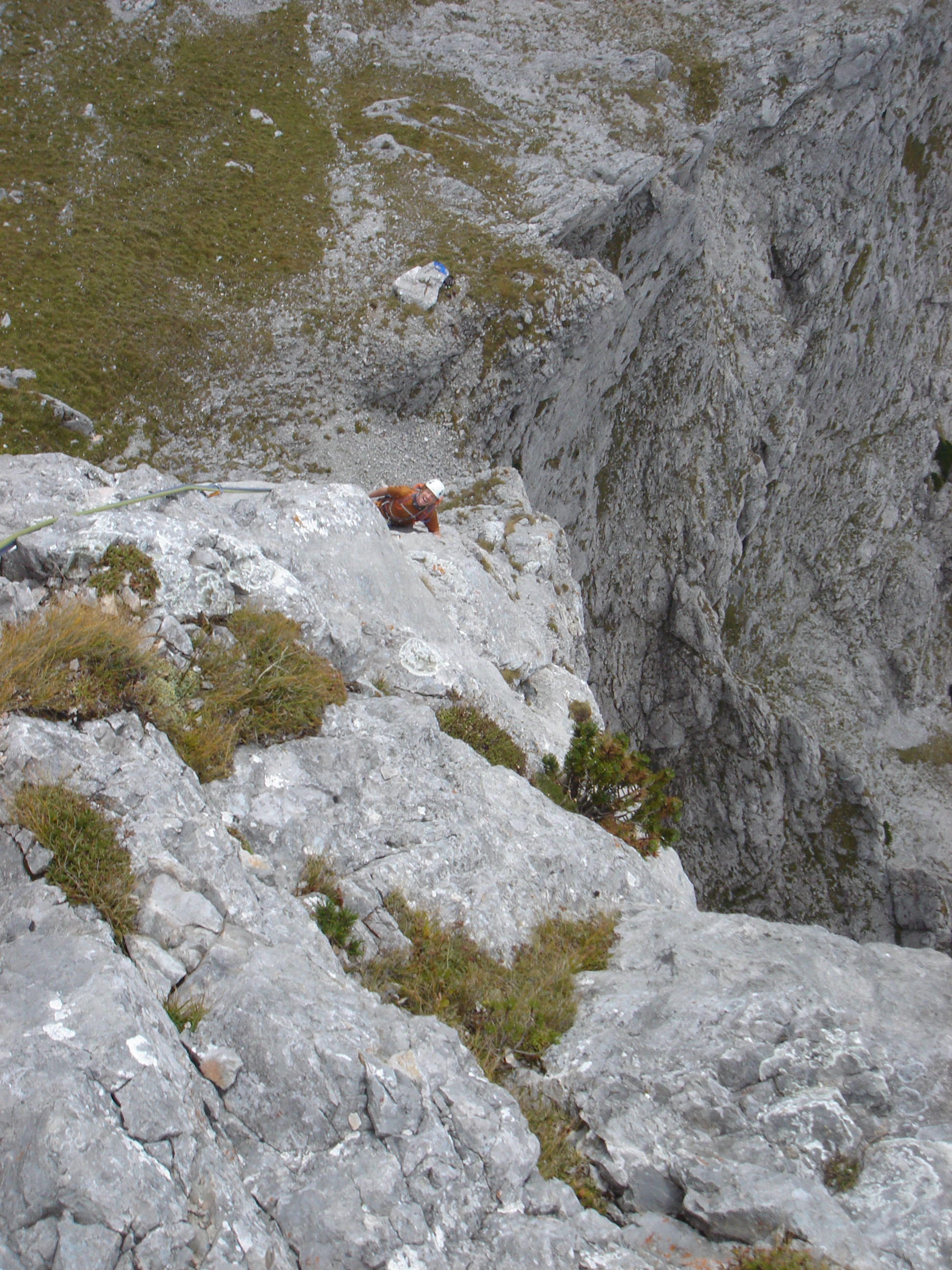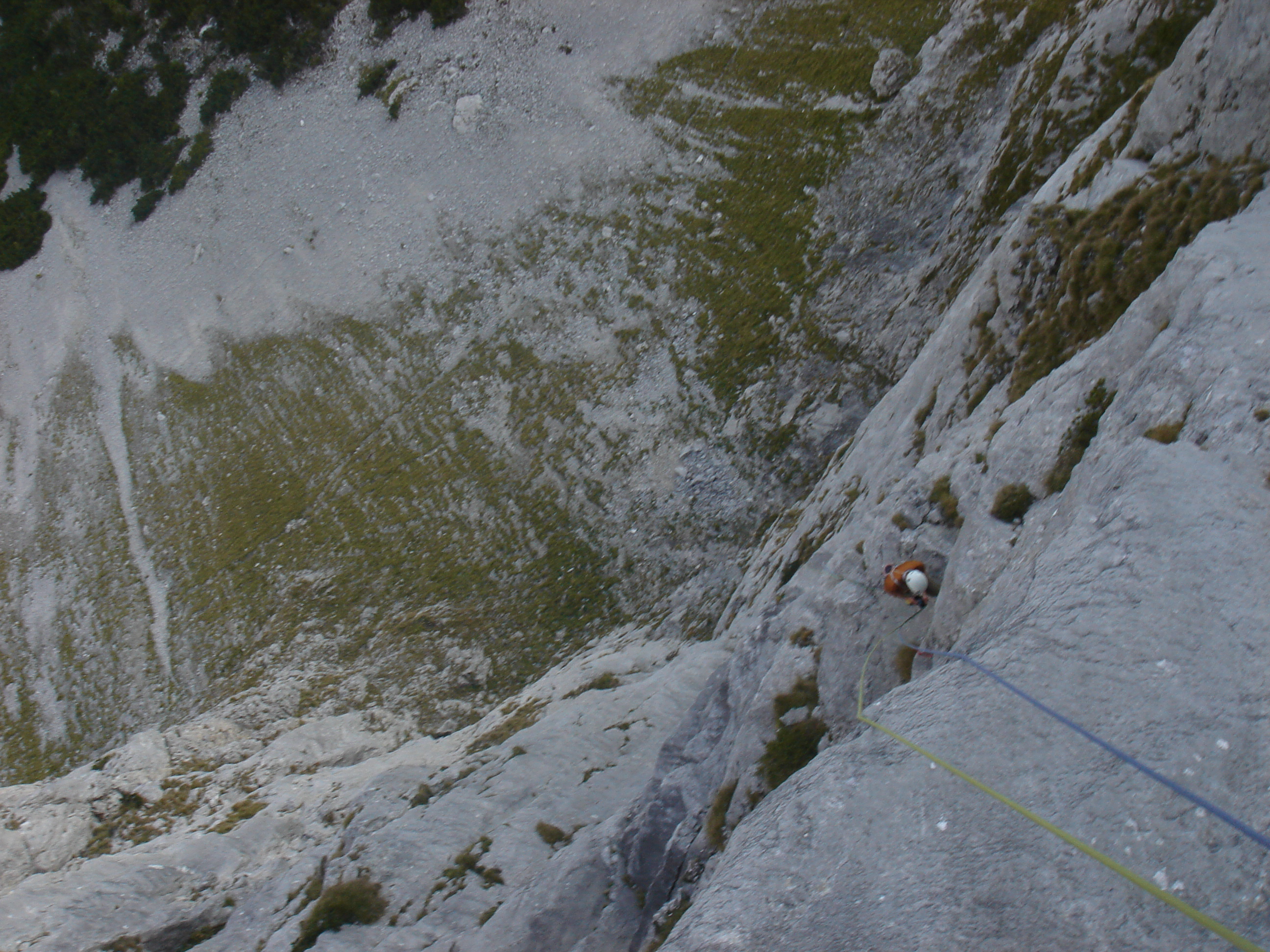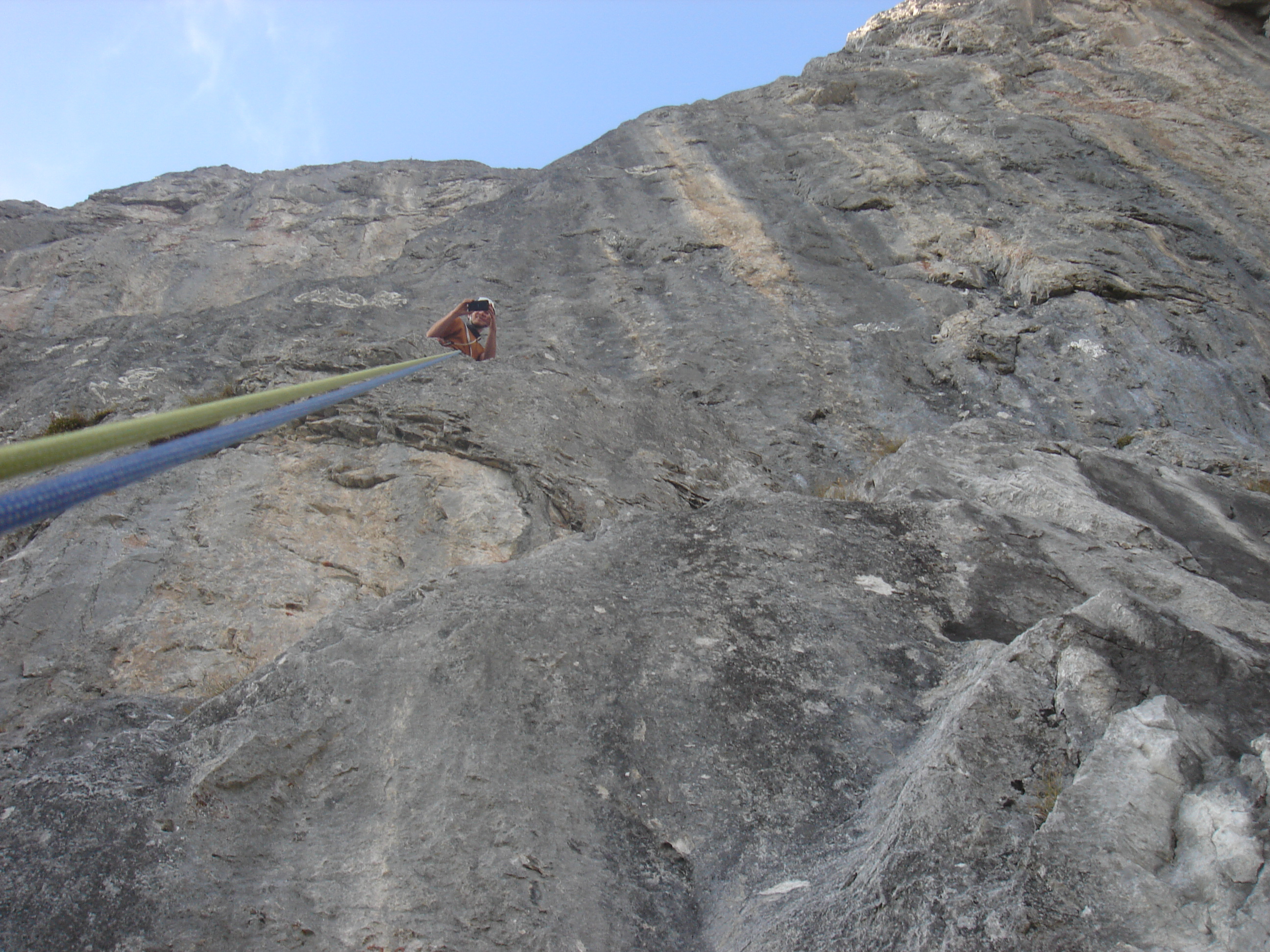 in der zweiten Seillänge (das blaue Fleckerl ist das Rucksackplatzerl)