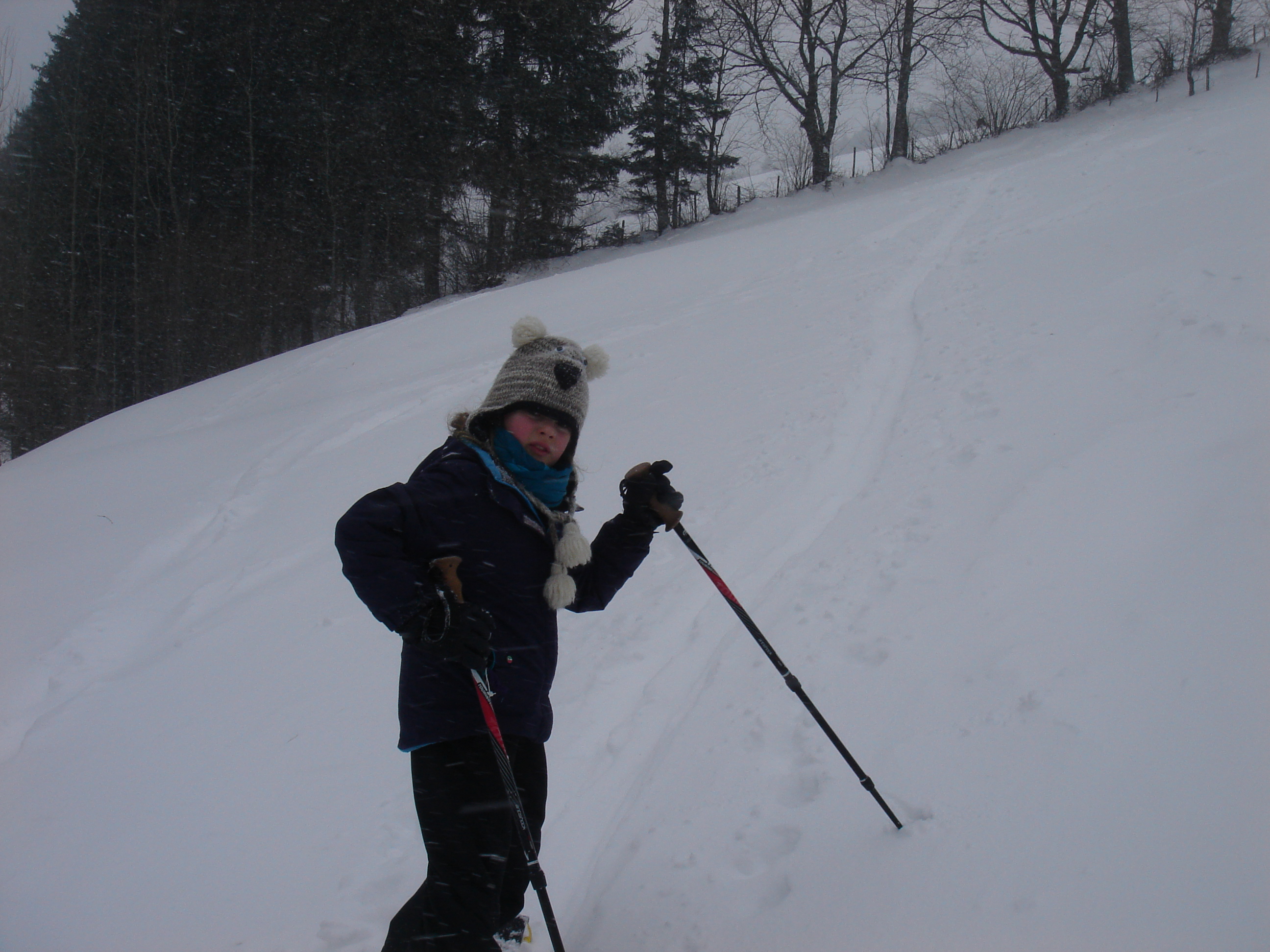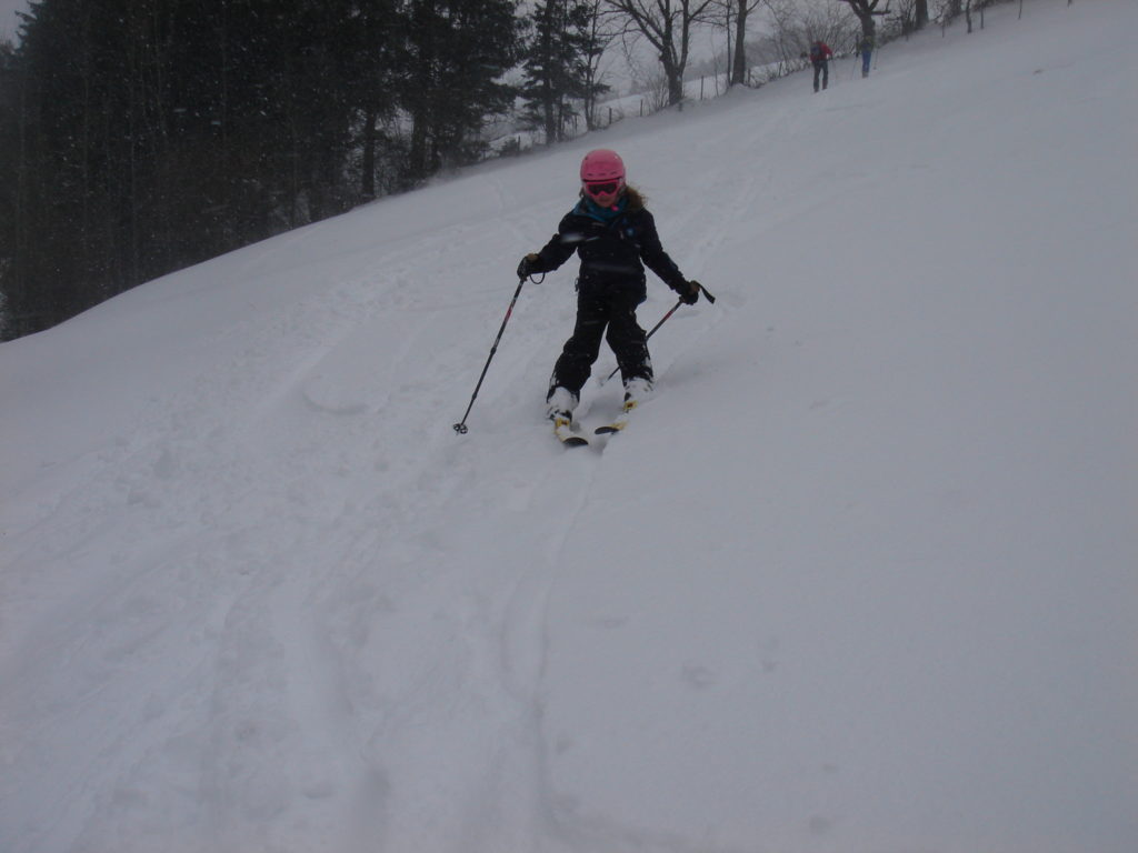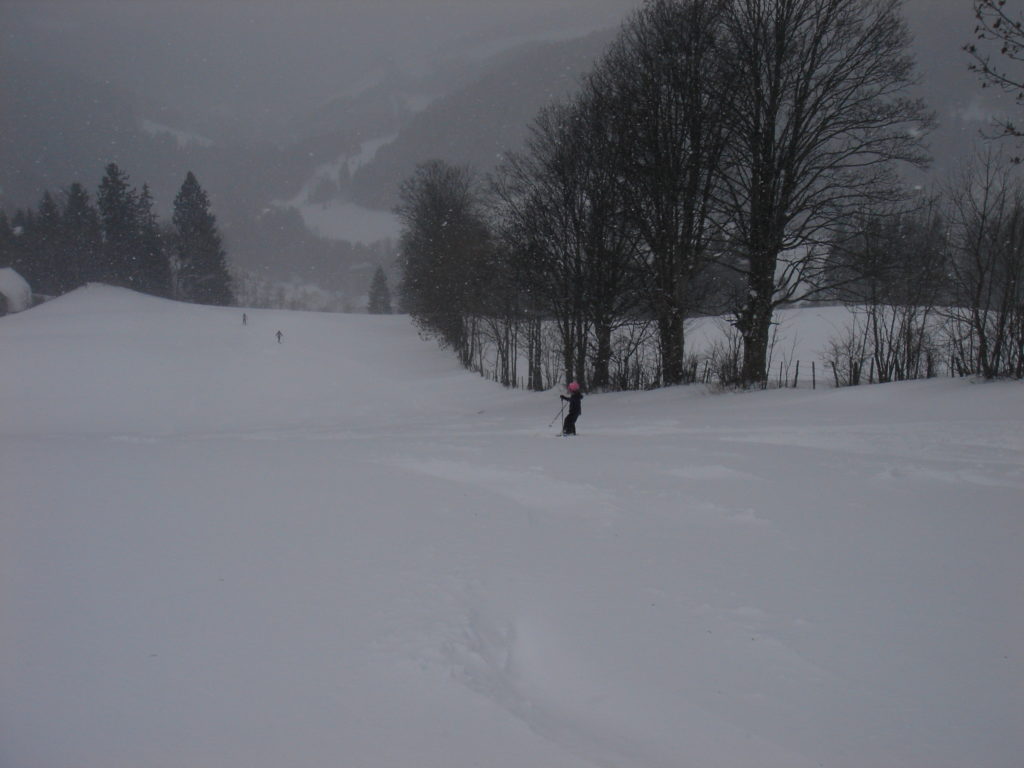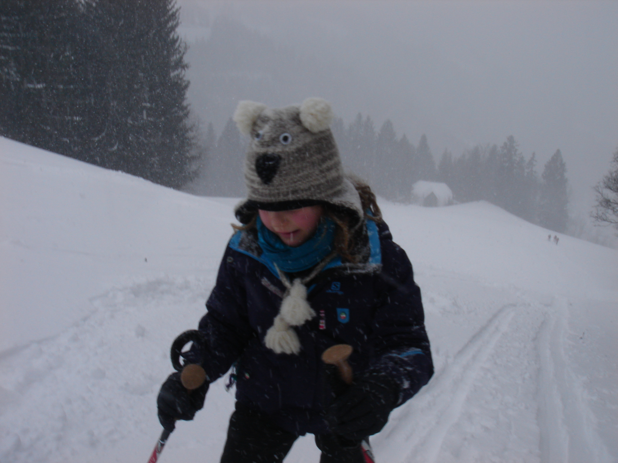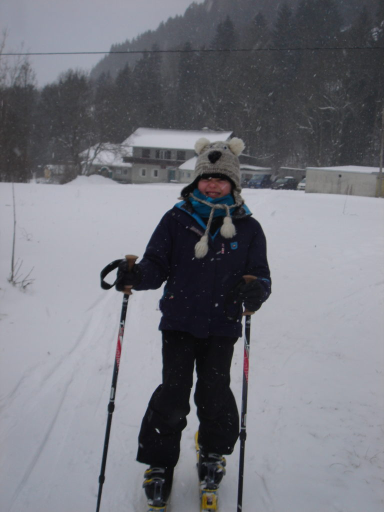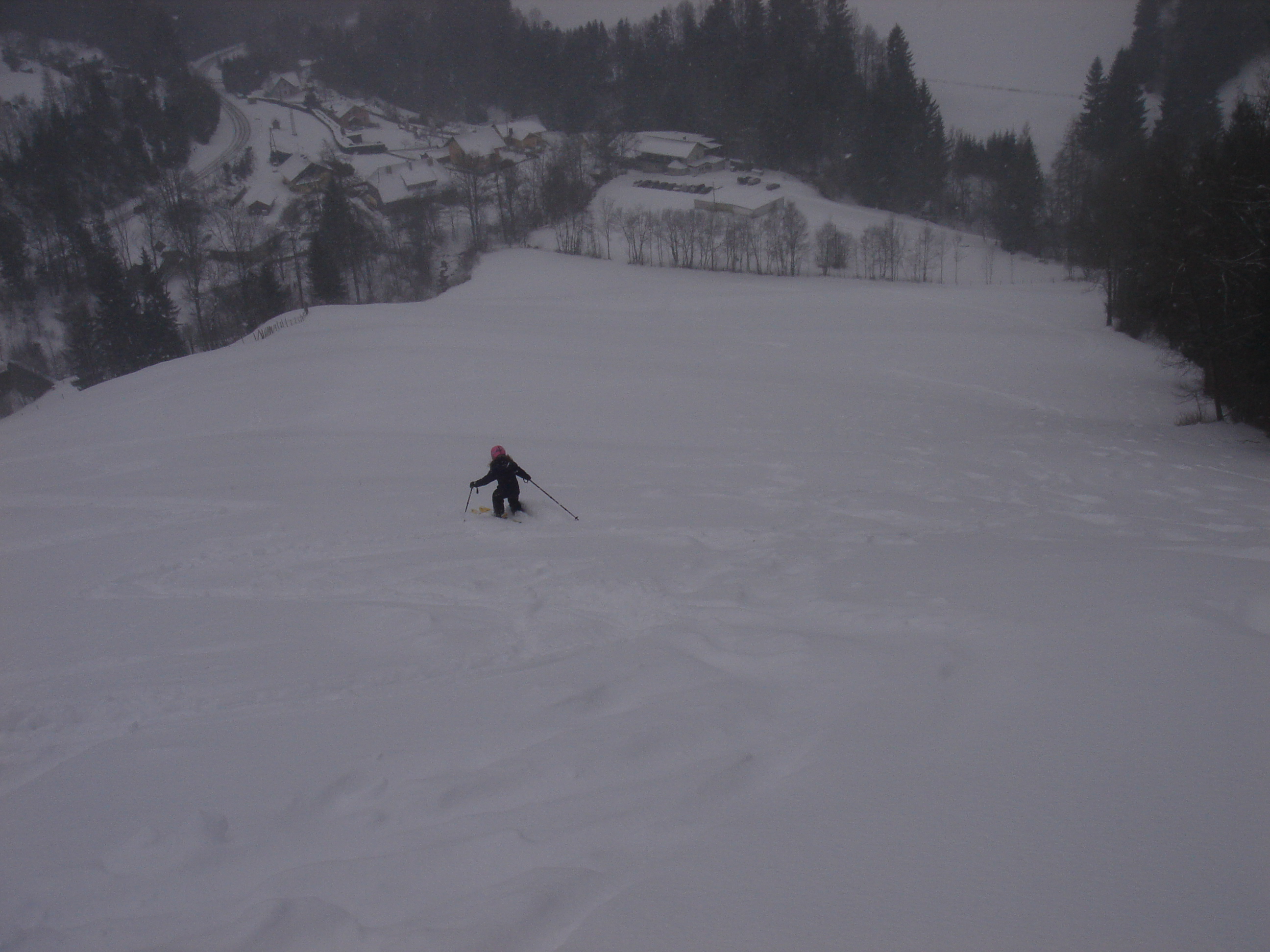 Leona war heute mit mir in der Granitzen und wir sind die beiden Wiesen hinauf zum Waldrand. Es war Leonas erste Skitour abseits der Piste.