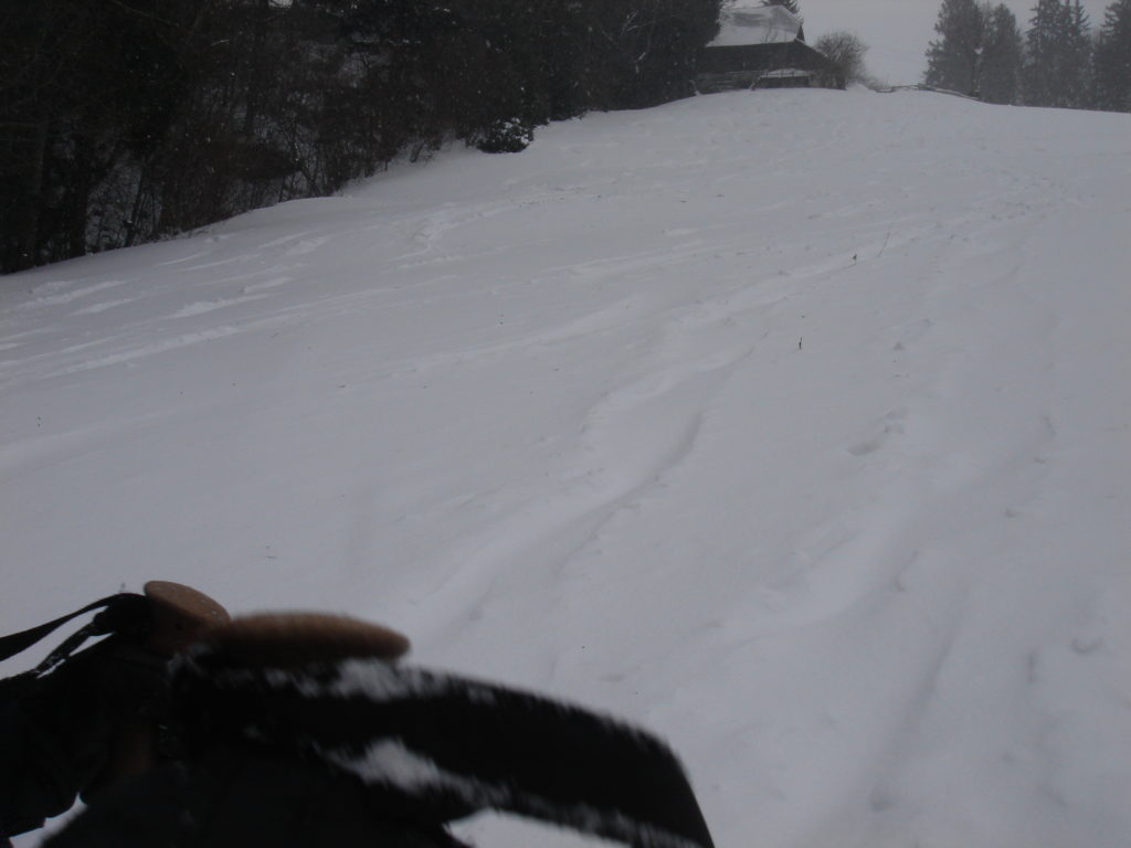 Und dann gehts wieder runter zum Parkplatz vom Granizter. Leona steht heuer das erste Mal auf Skiern und hat nicht vergessen wie es geht. Sie hat richtig Spass im guten Schnee und glücklich kommen wir nach eineinhalb Stunden wieder am Ausgangspunkt an. Allzuviel Schnee ist noch nicht. Trotz sanften Schwüngen und weicher Linien kommen die Grasbüscheln und Mauswurfshügel immer wieder unter der Schneedecke durch.