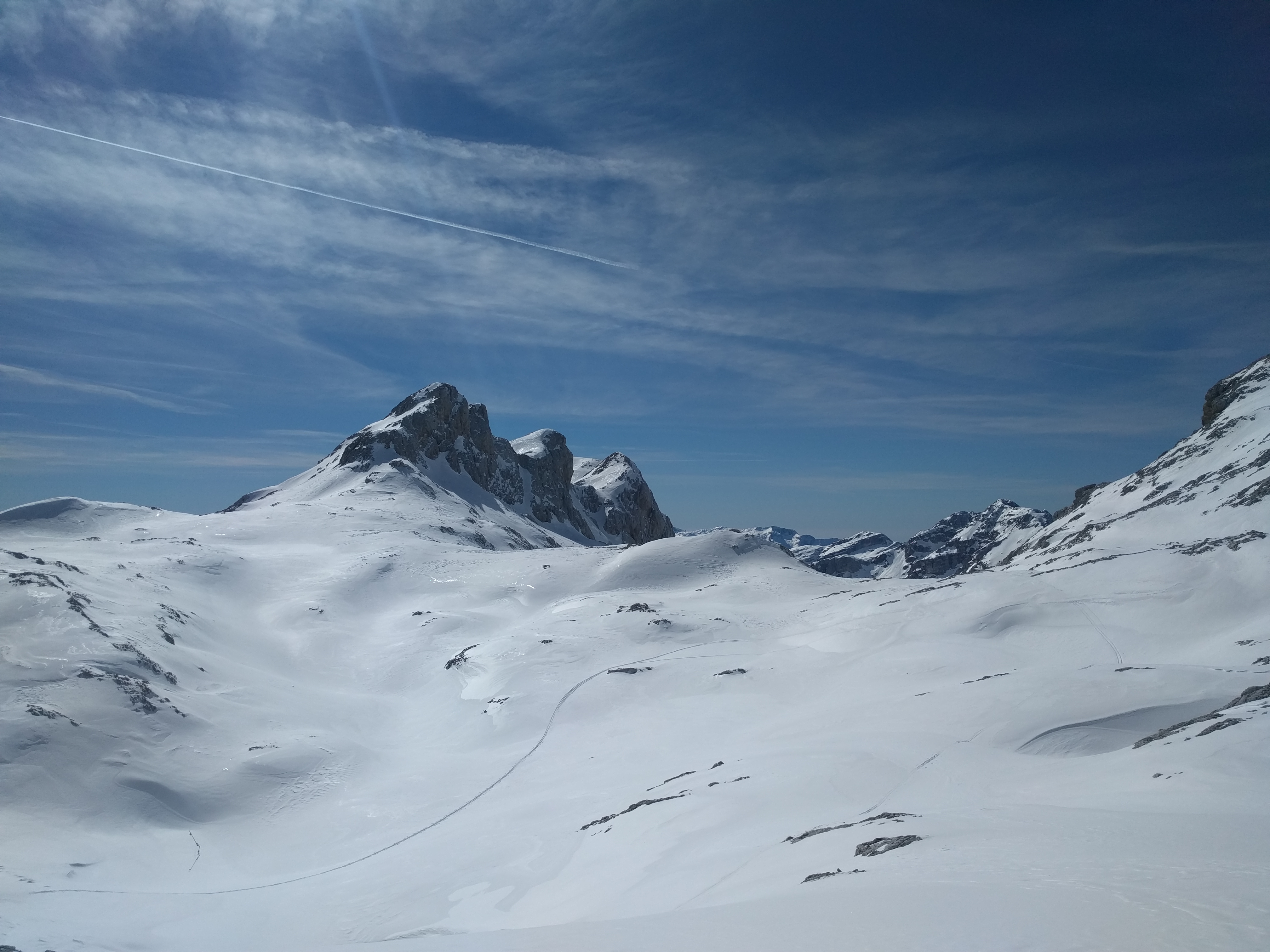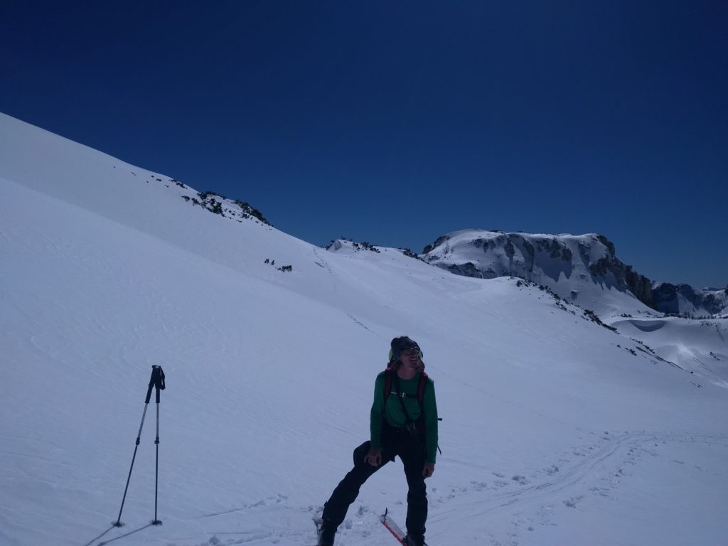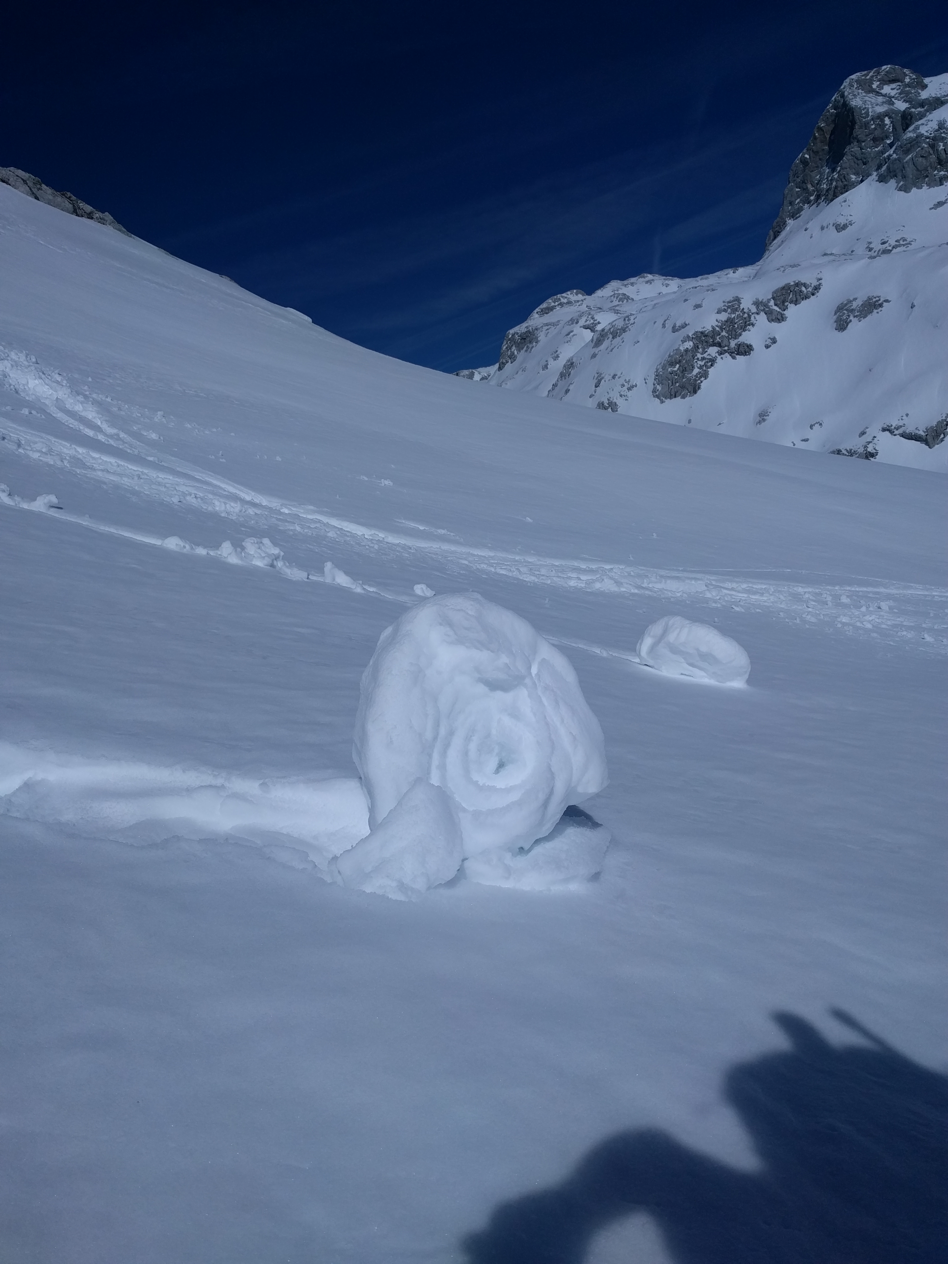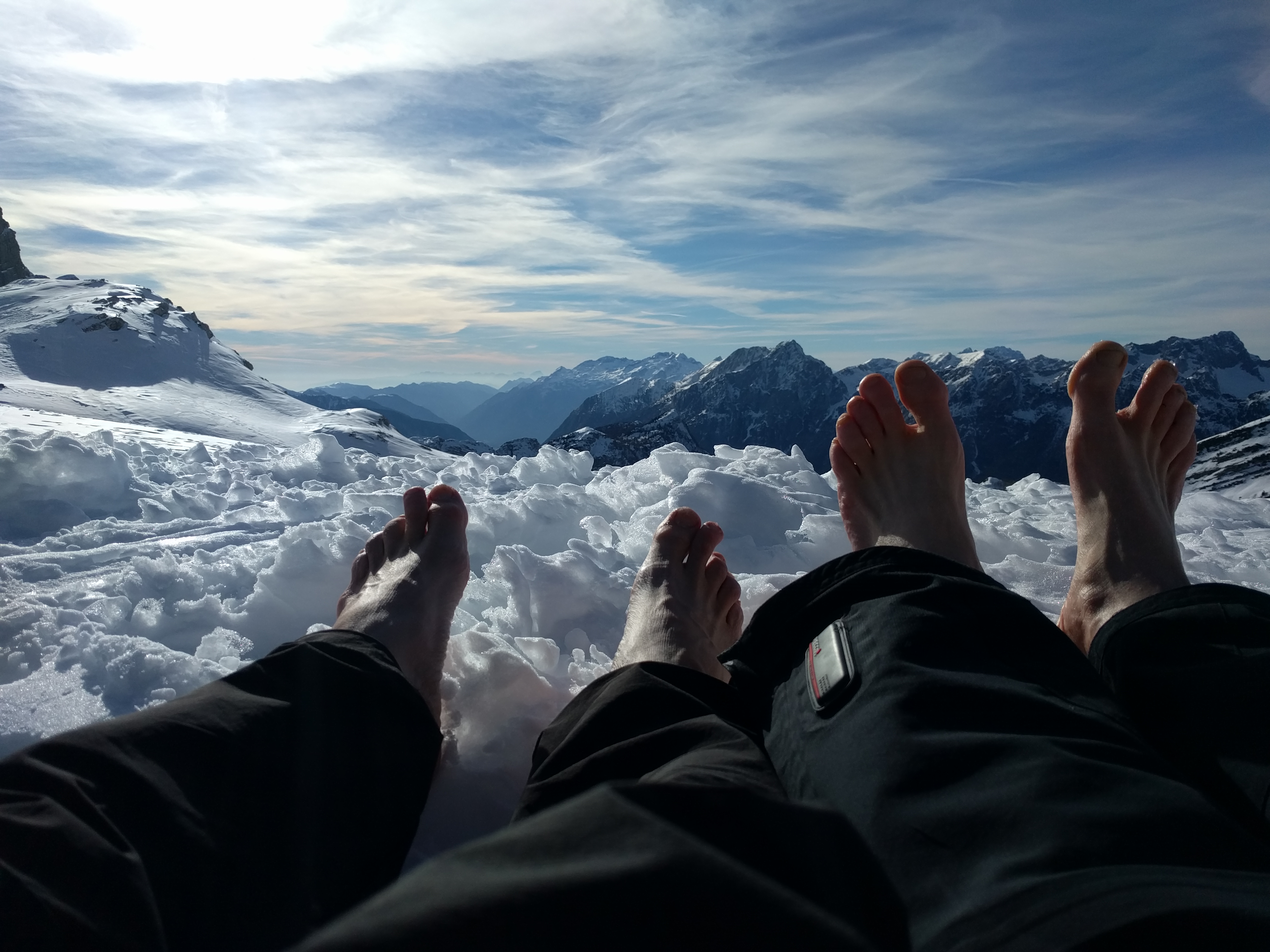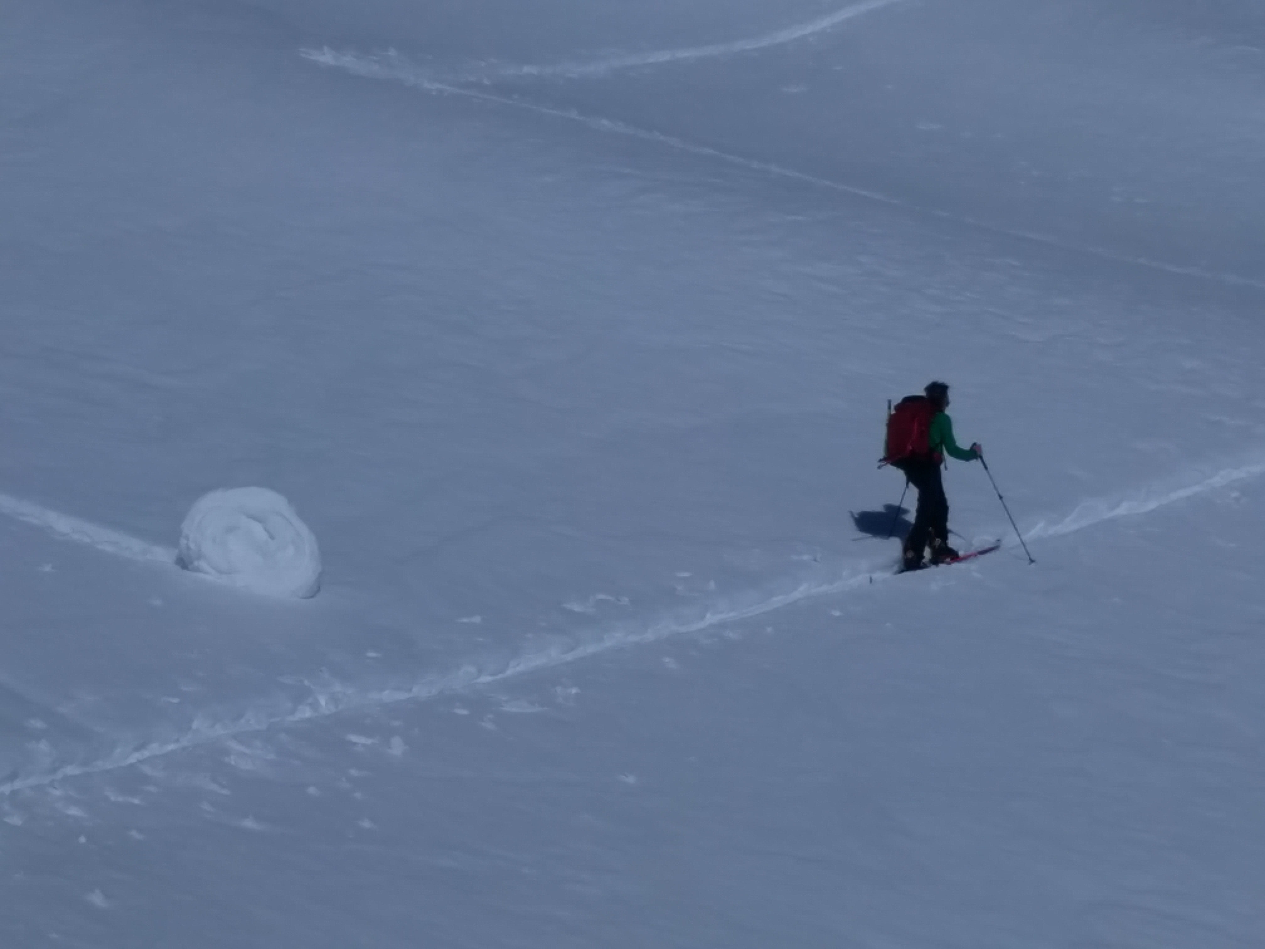 Kaiserinnenwetter, beste Verhältnisse und viele Erkenntnisse haben wir aus der Vier-Tages-Tour mitgenommen. Schweres Gepäck stärkt den Trainingseffekt und mindert das Abfahrtsvergnügen. Die gemeinsame Zeit war genial, die Einsamkeit und Abgeschiedenheit löst einen Dichte des Da-Seins aus, die besonders ist und Aspekte zwischen Rausch und Angst hervorbringt. Die Reduziertheit in Allem bringt eine Fokusierung mit sich, wie wenig es braucht.