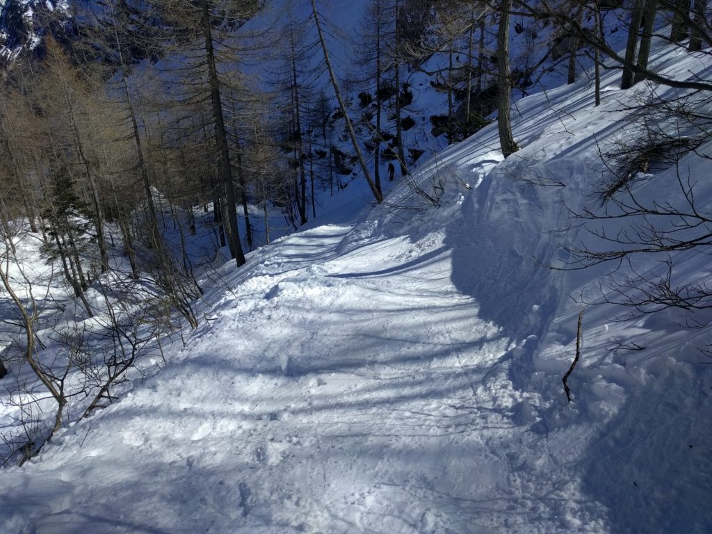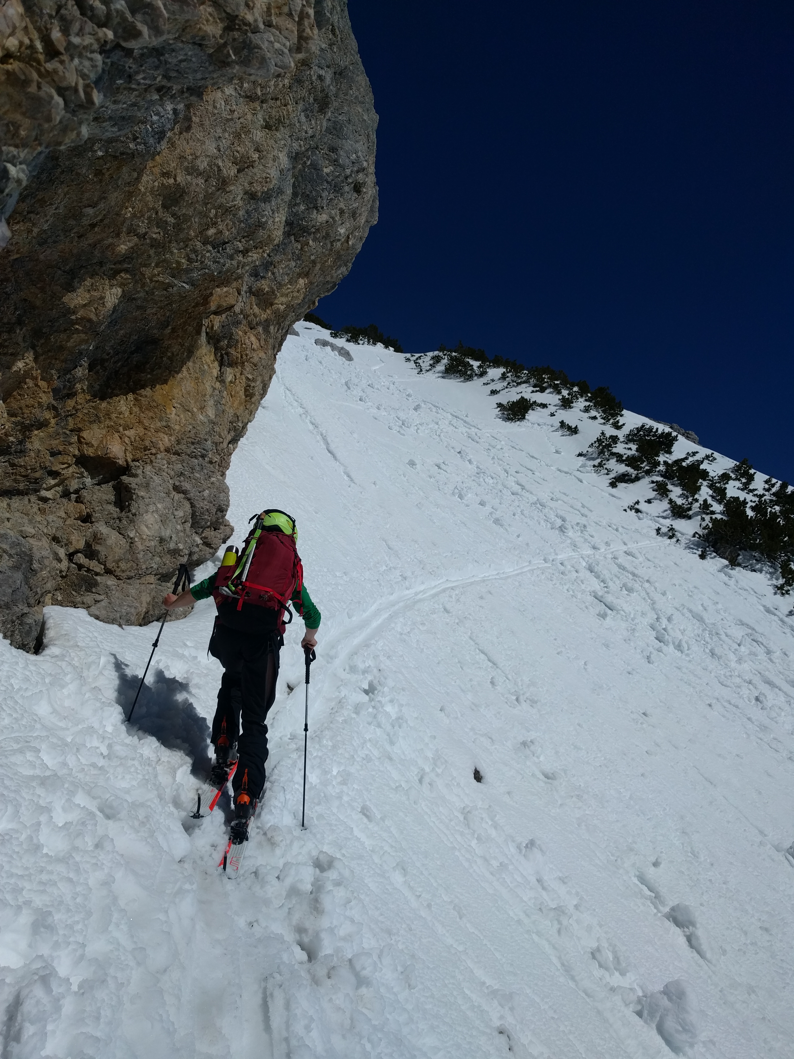 Der Anstieg zur Wocheiner Scharte mit Pulver und Triebschnee