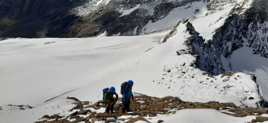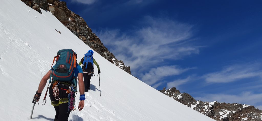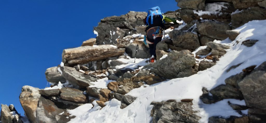 Fazit aus dem viertägigen Bergsteigen über dem Virgental mit 4500 Höhenmetern Anstieg, 42 Kilometern in 28 Stunden Gehzeit und mehr als 100.000 Schritten ist die Erkenntnis, das viele Berge im Winter lohnender und genussreicher sind als im Sommer und Herbst. Es braucht eine gute Auswahl der Ziele, den verwöhnt vom Winterbergsteigen sind Auf- und Abfahrten einfach feiner mit Skiern, als zu Fuß. Beeindruckend ist die ausgeapperte Landschaft auf jeden Fall aber für den Sommer und Herbst sind mir Berge mit höherem Kletteranteil lieber, die im Winter nicht so einfach zu besteigen sind. DieTouren waren trotzdem sehr fein und beim gehen stellt sich der Fluss ein auch wenn es wesentlich mehr Aufmerksamkeit auf Weg und Steigen braucht, gerade wenn man mit wenig Gepäck unterwegs ist. Wolfgang und Gerald gilt ein grosser Dank für die gemeinsame Erfahrung und die gemeinsamen Entscheidungsprozesse. Das gibt viel Vertrauen, Sicherheit und das Gefühl der Verbundenheit mit und ohne Seil. Ich erlebe uns immer wieder als sehr zusammengespieltes Team am Berg! DANKE