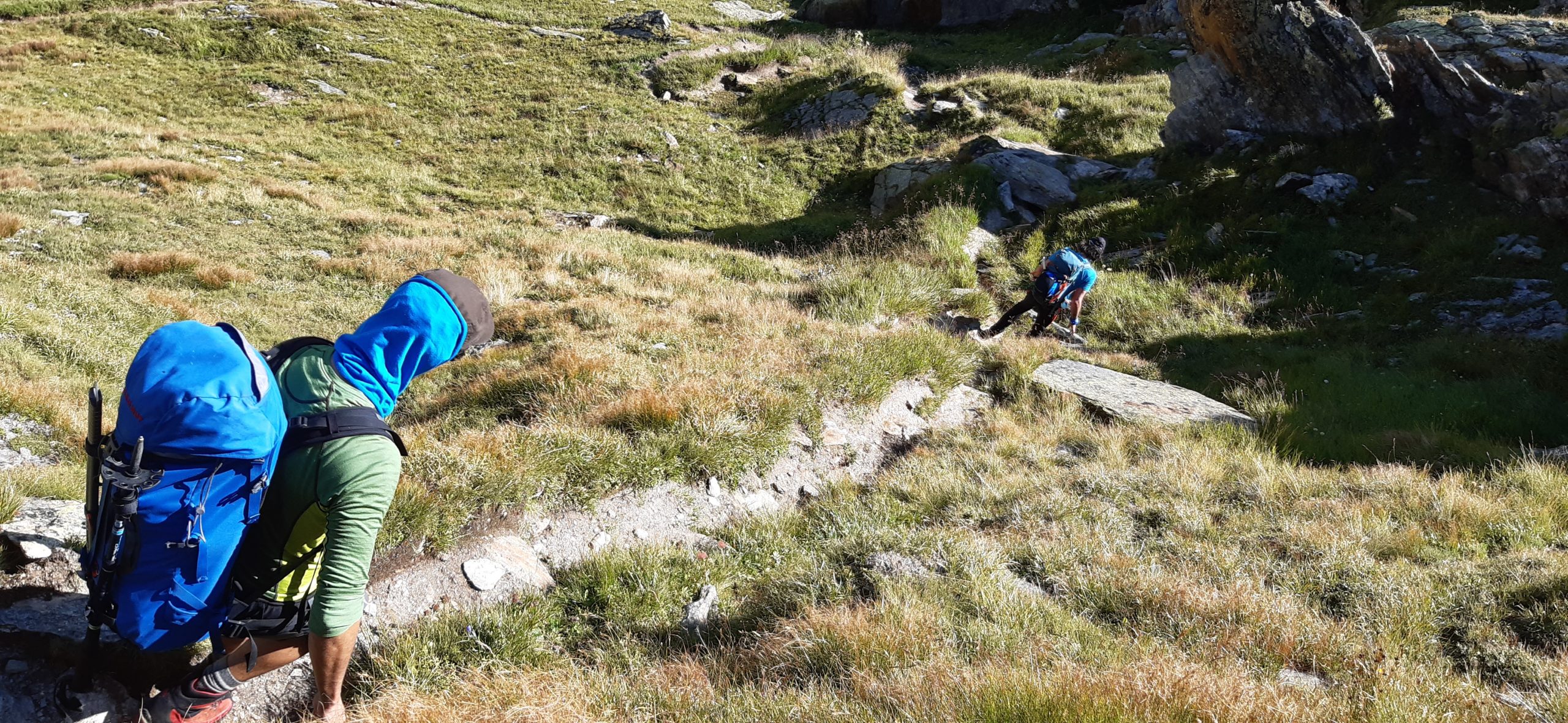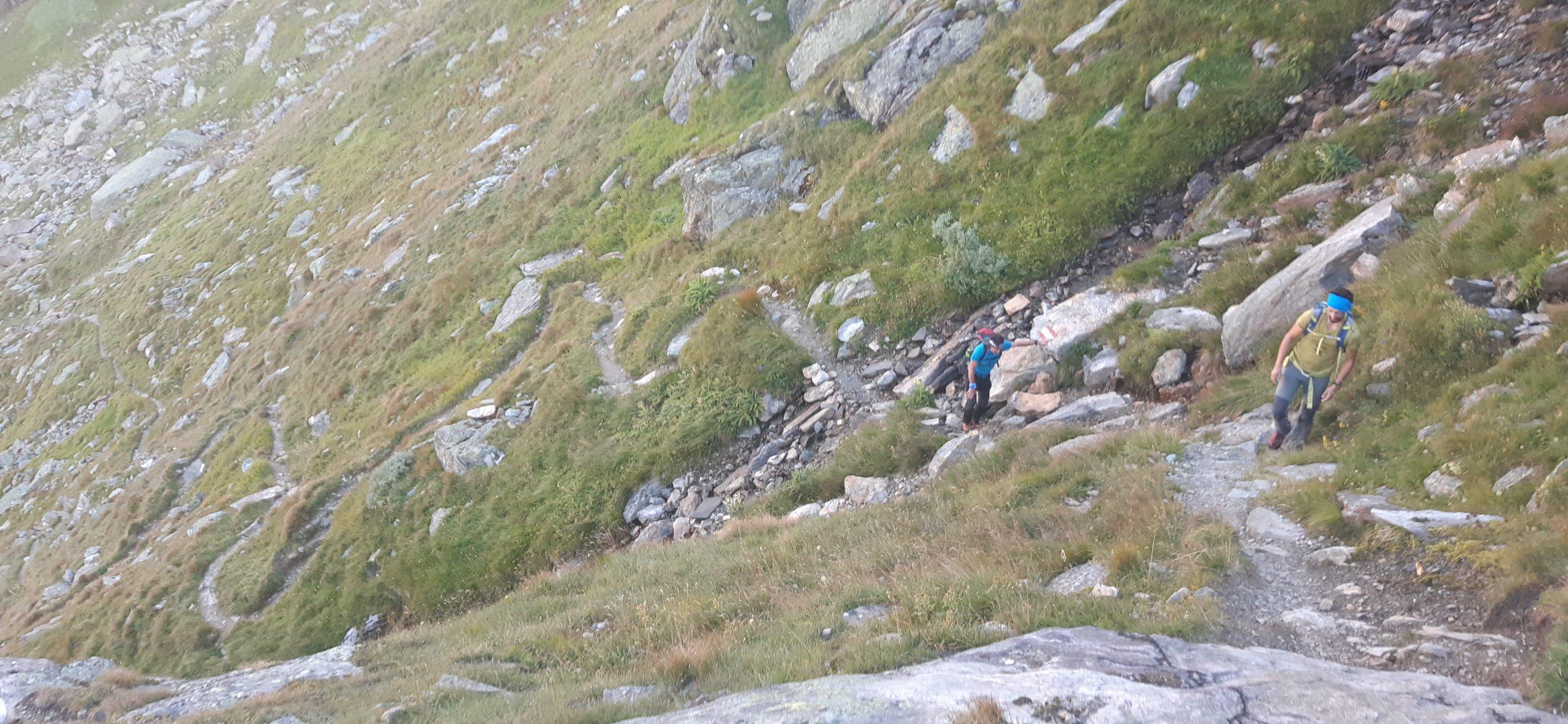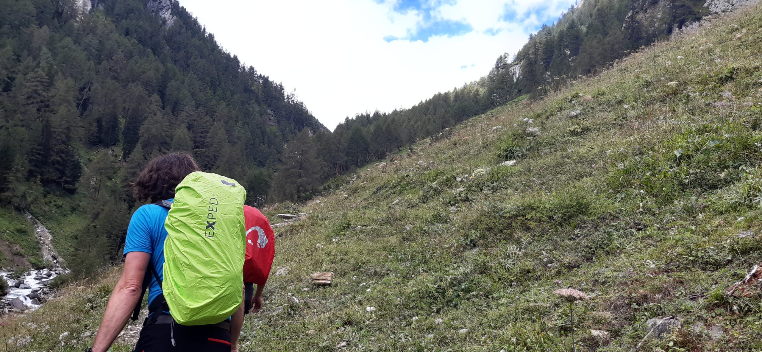 Der Abstieg von der Essener Rostock Hütte wird dann mit leichtem Gepäck zum Downhill-Trailrun. Ab der Materialseilbahn wird es deutlich langsamer.