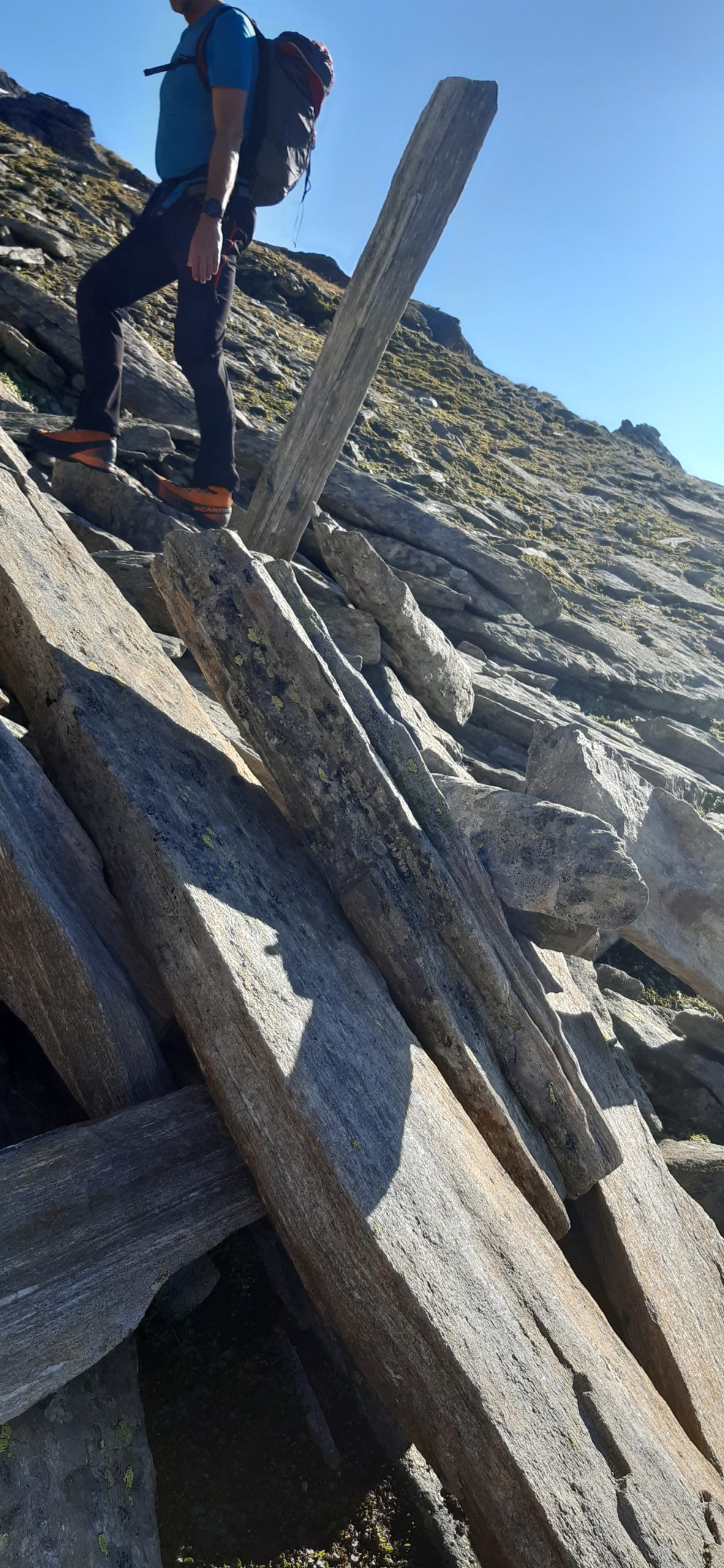 Nachdem am Ende der Tour noch Energie übrig ist versuchen wir uns an den Kletterrouten gleich vor der Hütte und haben unseren Spass an den Reibungsklettereine im Granit. Gewöhnungsbdrüftig sind die Routen allemal und beim nächsten Aufenthalt auf der Essener Rostock Hütte müssen die Kletterpatschen ins Gepäck. Der Hütten-Abend dauert dann bis in die Nacht weil um den Stammtisch eine Völkerverständigung zwischen innerösterreichischen Kulturen und der deutschen Diversizität passiert. Der stuttgarter Anwalt, dessen Sohn auf der Hütte ferial jobt, die Osttiroler Viehhirtin, die im Winter Finanzbuchhalterin ist, reden da mit bekannten Oststeirern und Zillertaler Baupolieren die zum Mineraliensammlen sind. Ich mache die Probezeit für die Wintersaison, wenn die Hütte dann voll ist. In der Früh können sich nicht mehr alle an die Zahl erinnern die auf ihrer Hand steht und das aufstehen fällt schwer.
