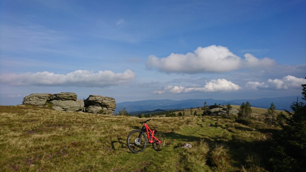 Der Trail wird immer besser und noch lange vor dem höchsten Punkt wendet sich das Blatt. Spassig zu fahrender Pfad am breiten Almrücken. Und oben angelangt ist der weitere Weg einfach nur mehr genial. Vorbei an etlichen Felsformationen und der Bersteinhütte durchgehend flowig und einfach zu fahrender Trail, der mir ein Grinsen ins Gesicht zaubert. Kurz vor Hirschegg dann noch ein Rudel Parasole eingesammelt glücklich und zufrieden gehts heimwärts …
