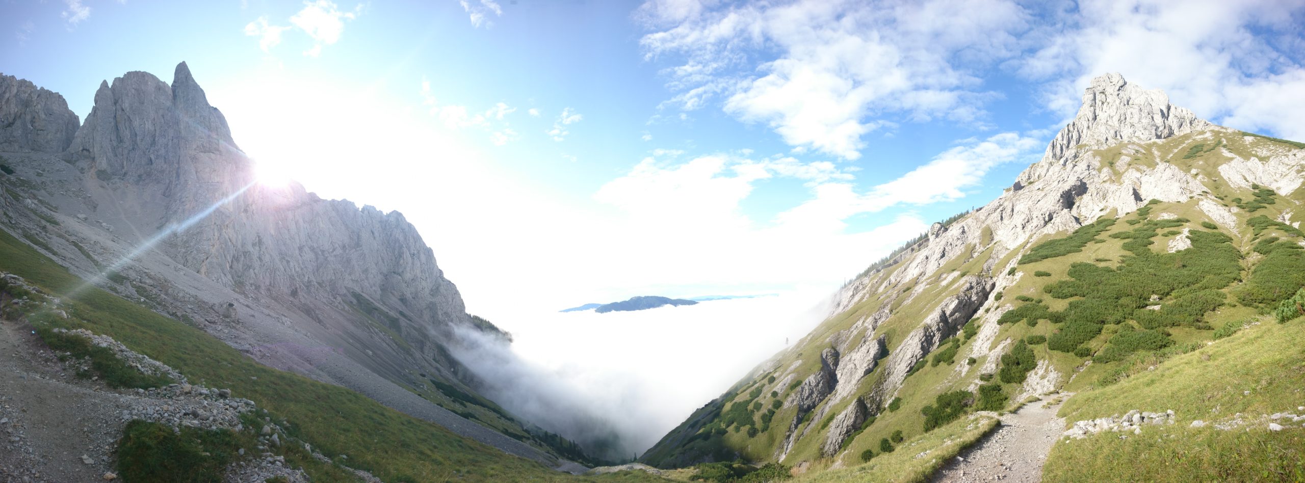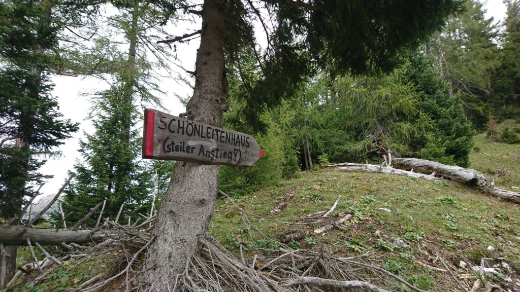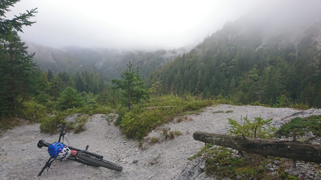 Runter von der Windgrube möchte ich den „Hans Leitner Alpinsteig“. Ich weiß nicht was mich erwartet, nur, dass er als steil charakterisiert ist und erst 1992 erbaut wurde. Nach den ersten hundert Hm bin ich entzückt. Ich glaube, das ist das steilste je von mir gefahrene Abschnitt und das auf griffigstem Waldboden. Viele Lange Abschnitte des 800hm Abstiegs sind gut fahrbar, manche unglaublich flowig und sanft den Rücken entlang, manche auch wahnwitzig steil. Weiter unten reiht sich eine Spitzkehre an die andere an denen ich mit meiner derzeitigen Technik scheitere. Auch längere Abschnitte die ich schieben muss weil doch zu wild sind dabei. Insgesamt jedoch unglaublich lohnend und mehr Single kann ein Trail nicht sein. Wäre nicht der mühsame Aufstieg, ich würde die Runde regelmässig machen bis ich irgendwann alles fahren kann;-)