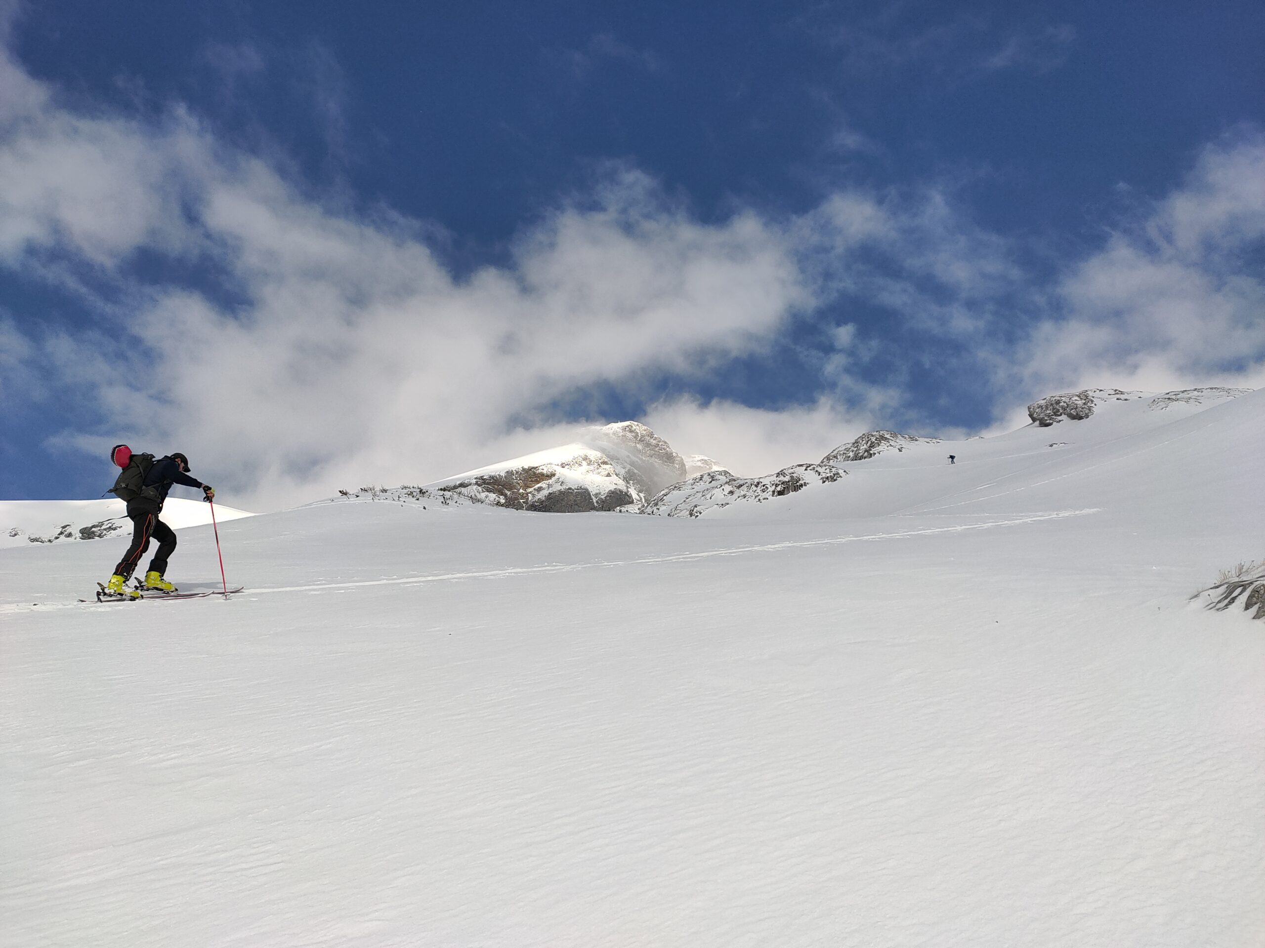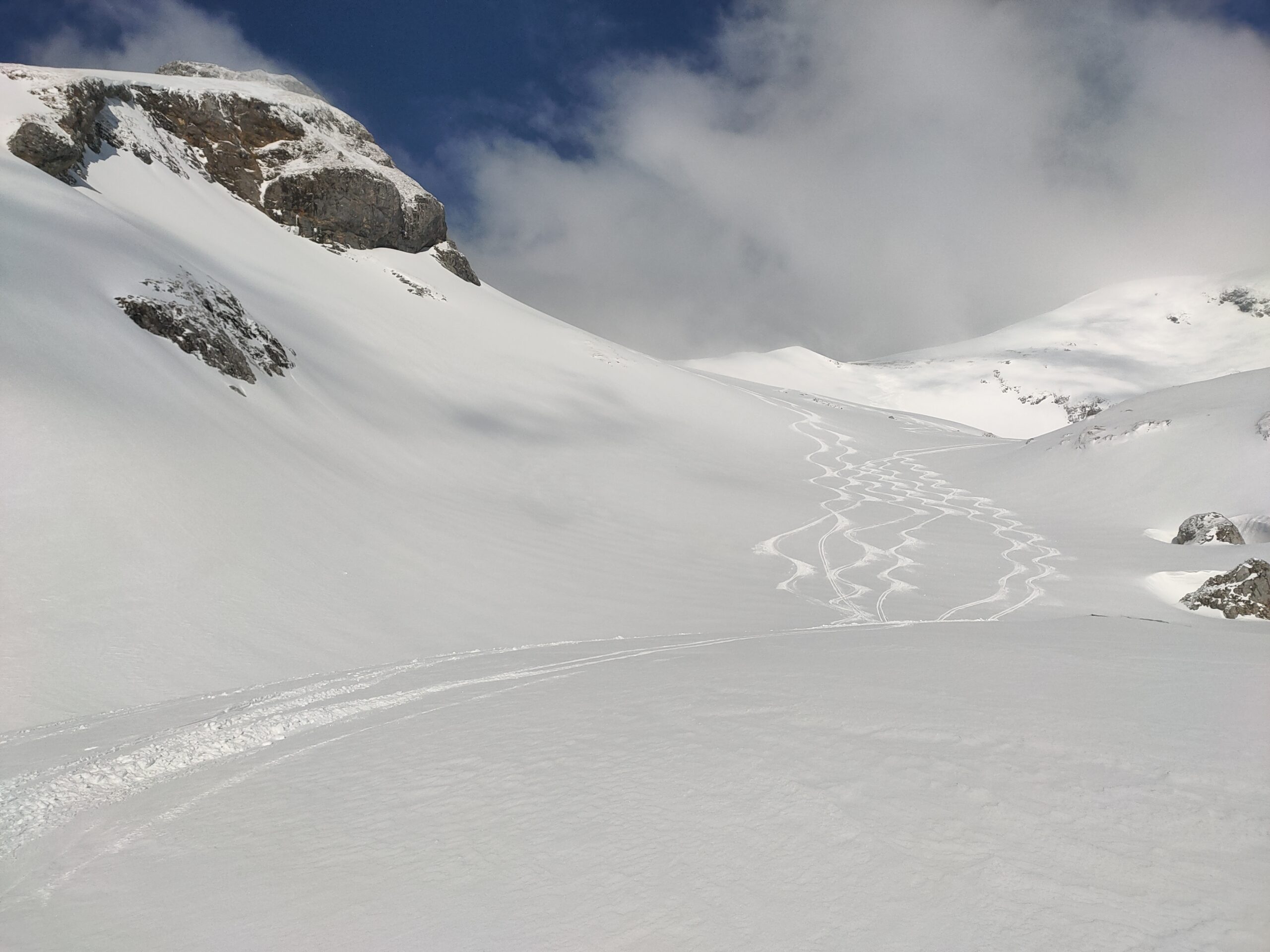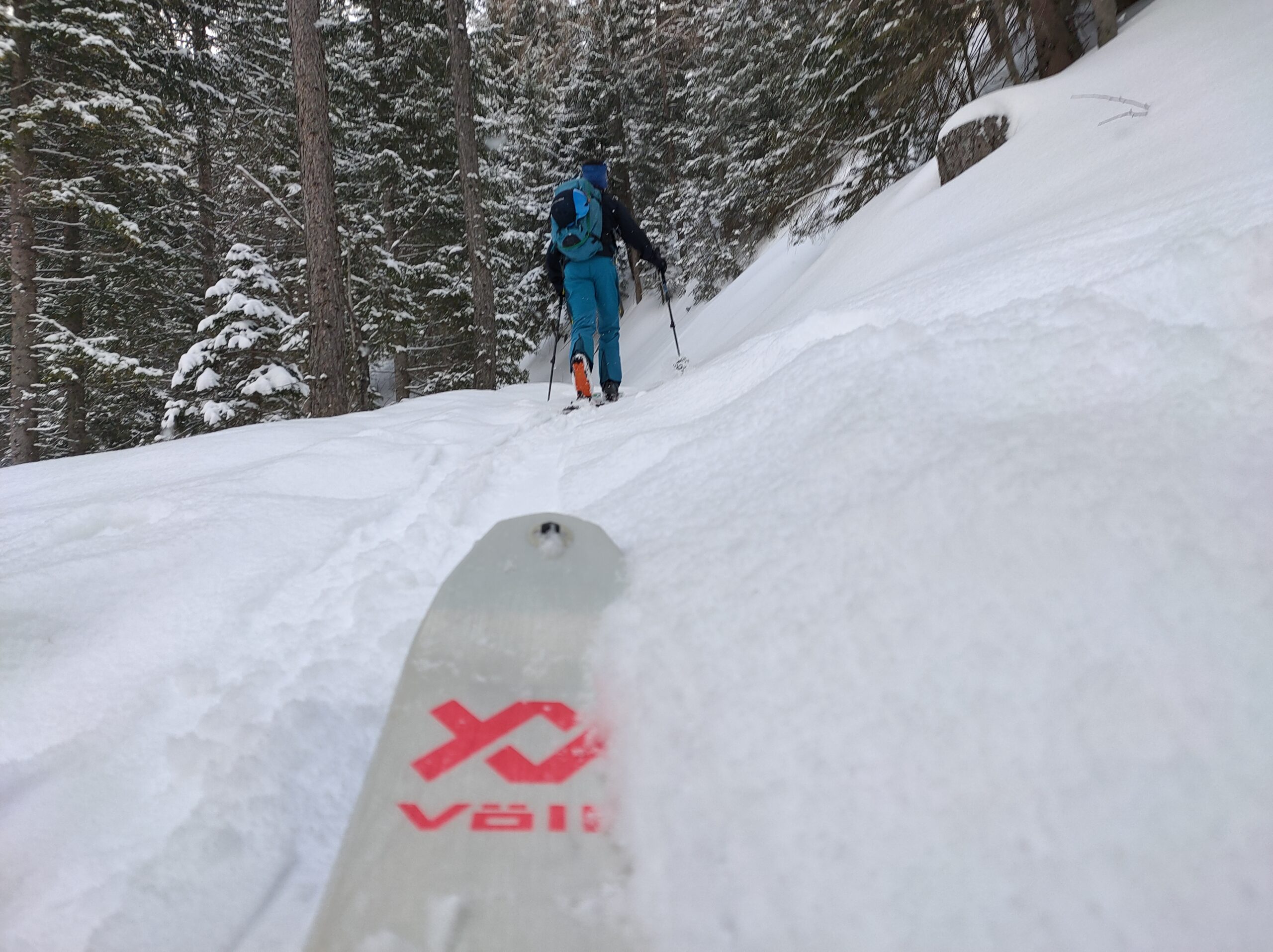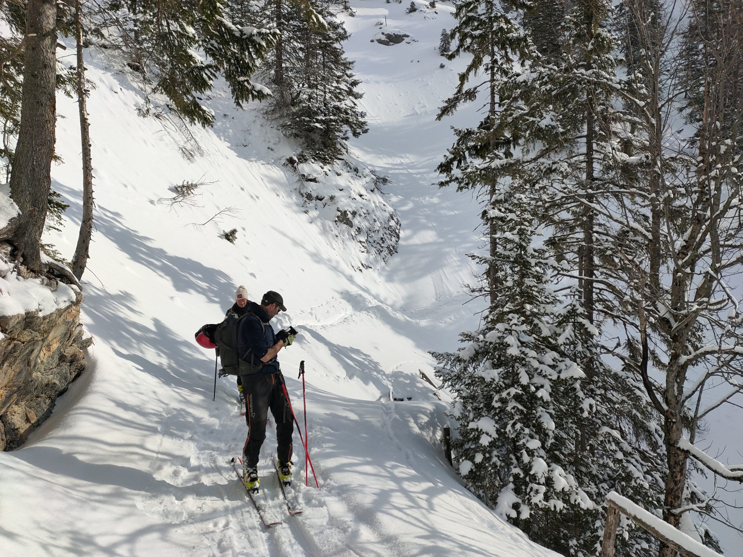 Nach 10 Tagen Skitourenabstinez mit verschiedenen Hintergründen verabreden Stefan, Peter und ich uns in Graz und treffen glücklicherweise aber nicht ganz zufällig Wolfgang am Parkautomaten in Tragöß. Ich habe heute keinen Schraubenschlüssel im Gepäck, Wolfgang hat, meine Tourenski wurden zuletzt von Marie-Theres genutzt, deshalb passen meine Schuhe nicht in die Bindung. Die Schneeketten von Stefans Auto liegen in der der Tiefgarage, geschützt vor Salz, UV-Strahlung und anderen Umwelteinflüssen und die von unserem Auto passen einfach nicht auf die breiten Dickreifen von Stefan´s. Wolfgang hat Platz im Auto und so fahren wir mit ihm die Jassing. Die Russenstraße ist im Angesichts des Krieges in der Ukraine konnotiert. Wir gehen sobald wie möglich auf den Schinderweg, der auch konnotiert ist. Gemütlich wollten wir es angehen. Nur Wolfgang ist schneller. Er wartete am Lawinengang, der ohne Rattrackspur zugeschneit mit Graupel eine Barriere für den Weiterweg darstellt. Trotz Graupel in Kniehöhe geht es mit der darunter verborgenen Spur der Tage vorher gefahrlos drüber und weiter zur Sonnschienhütte. Die Wolken verziehen sich immer mehr, der Schneefall wird zu Glitzerstimmung und das Himmelblau mit Sonnengelb verzückt. Peter und Stefan waren noch nie hier und sind beeindruckt von der Schönheit des Hochplateaus. Wir gehen weiter Richtung Murmelboden und steigen die Steilstufen hinauf zur Polsterkar. Der Schnee ist sicher und Pulver und Stefan und Peter machen Rast und fahren dann mit Treffpunkt Sonnschienalm ab, wärend ich Wolfgang hinterherhechle und er nicht sehr lange oben warten muss. Kurz vor der Scharte hört der Wind auf und es wird kochtopfartig warm, wie damals am Großvenediger. Dann geht es im Superpulver hinunter, aber nicht ganz. Wir müssen nochmal rauf und dann nochmal runter weil es sooo schön ist. Second first lines und dann hinunter in den Schlauch. Das Wetter ist noch besser geworden. Sonne in Blau mit viel frischem Weiß, dazwischen Felsen im Anraum, ein paar Gams sehr dekorativ. Winterwonderland. Zurück auf der Sonnschienalm haben wir gemütlich siebzehnhundert Höhenmeter gemacht und das Bier/Radler schmeckt. Der Wirt ist überfordert von der vollen Gaststube. Bei der Abfahrt in die Jassing sucht Wolfgang jeden Pulvermeter im steilen Wald. Stefan und Peter nicht mehr jeden und ich bin zu fertig um die konnotierte Russenstrasse zu verlassen.
