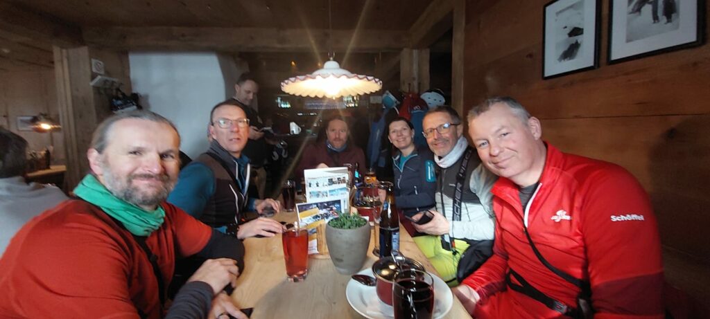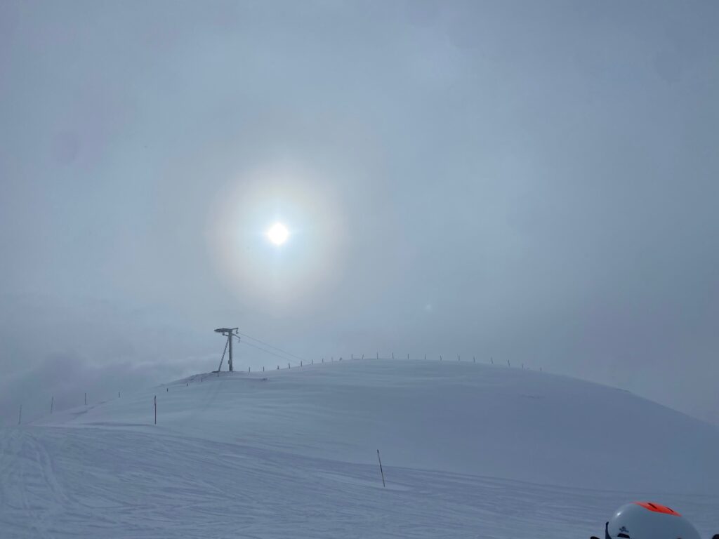 Am Samstag sind wir am und um den Schindlergrat unterwegs und haben einige herrliche Hänge unter den Beinen, die wir aber nicht zu Gesicht bekommen. Das Fahren gehen ordentlich in die Oberschenkel, den wir schauen mit den Beinen. Ich feile an meiner Technik, fahre die Skier näher zusammen und der zentralen tiefen Skiposition. Bei der fehlenden Sicht ist das nicht leicht, aber jeder Meter wirkt.