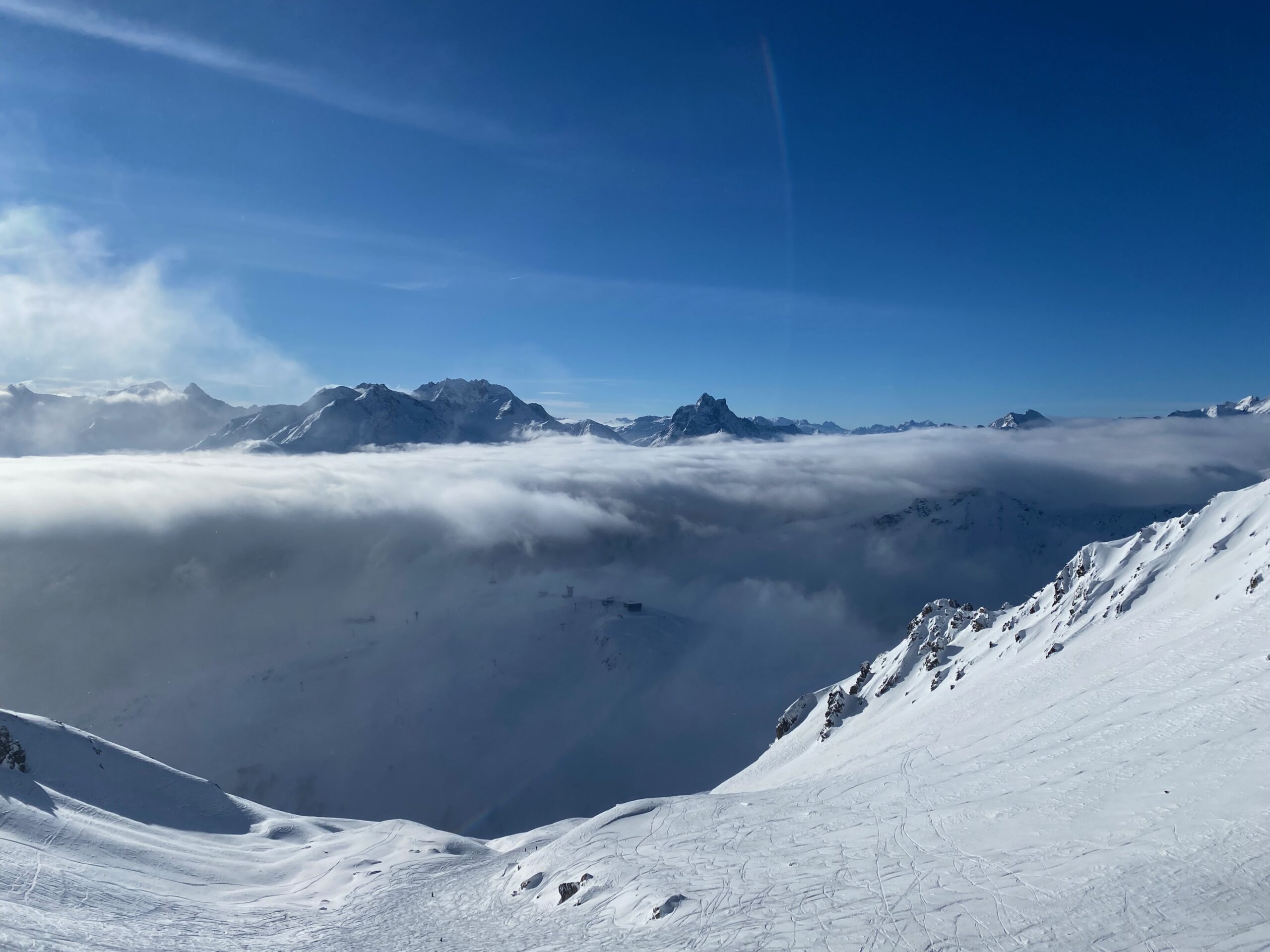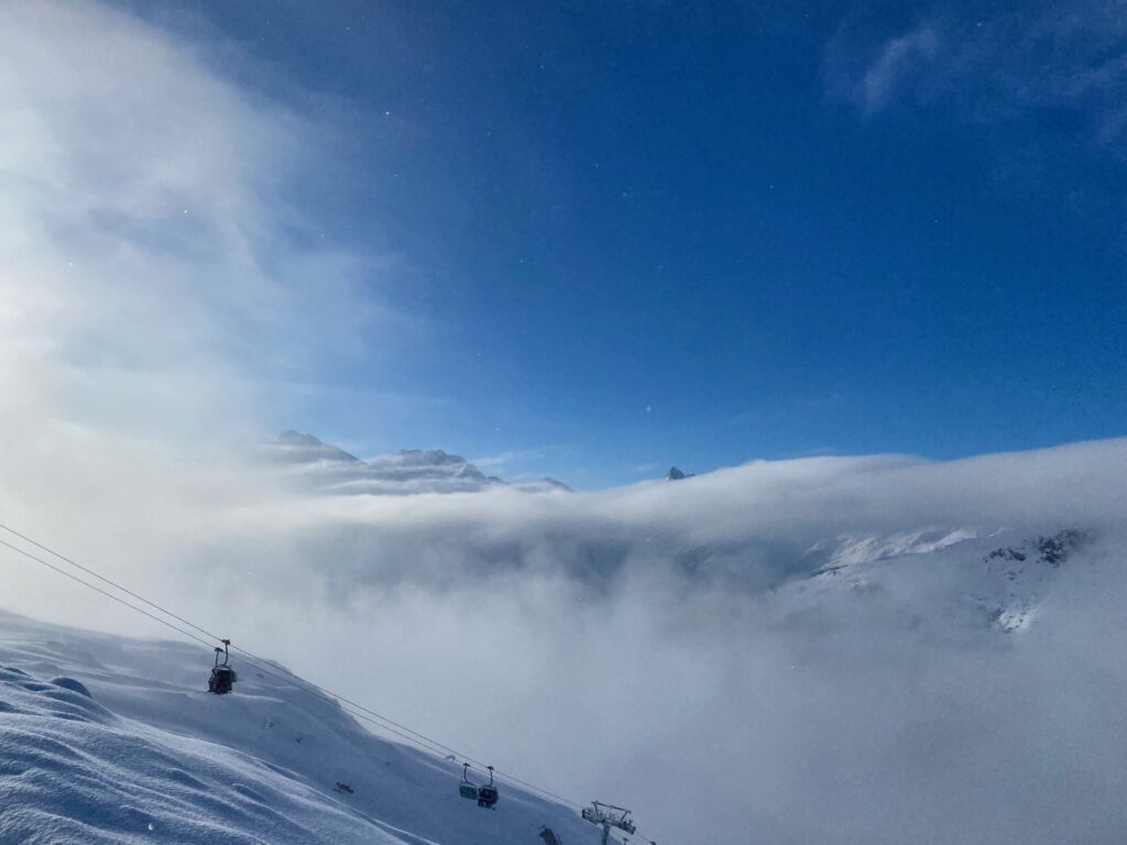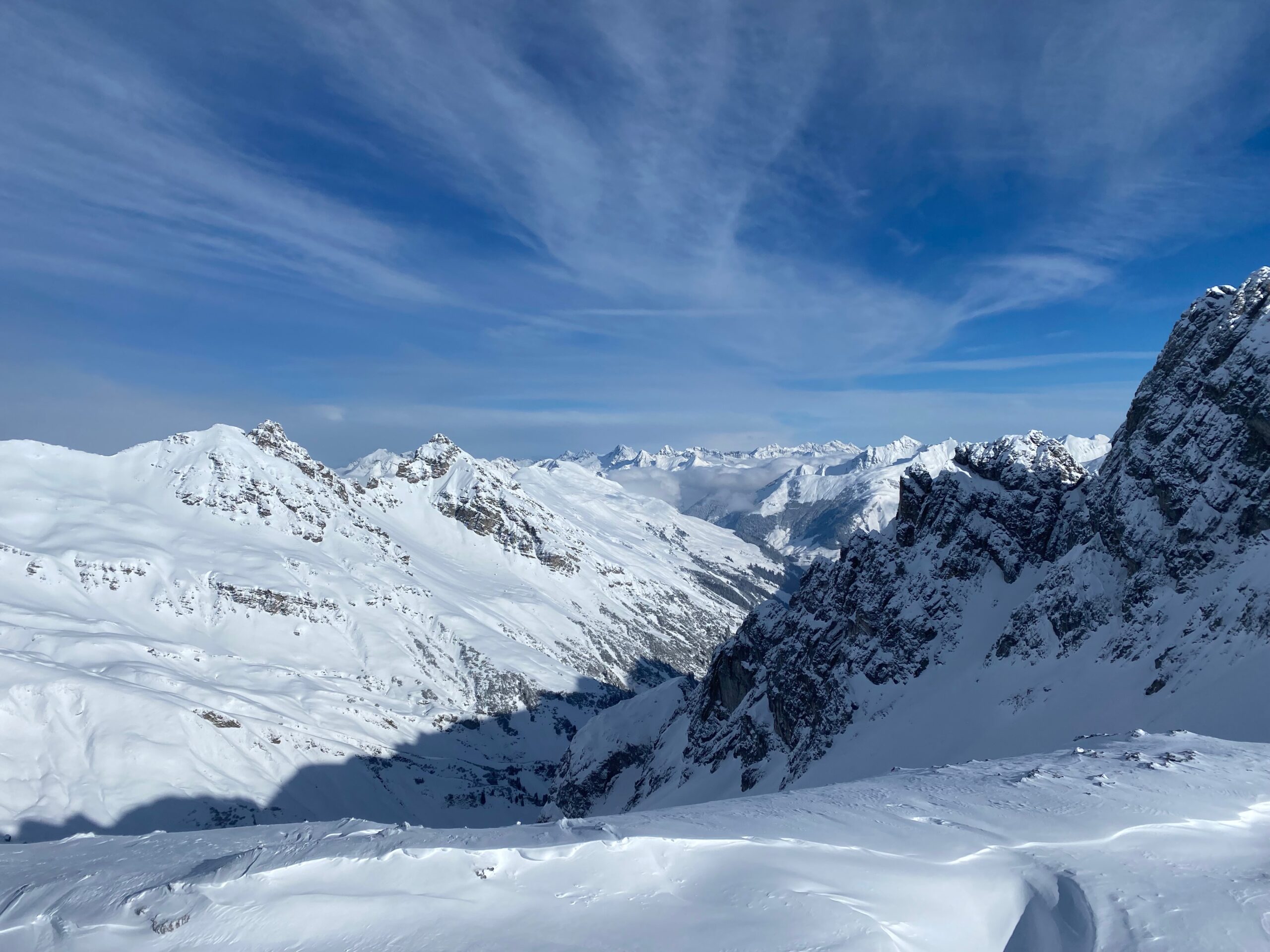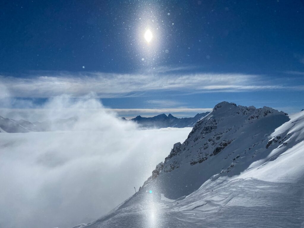 Neues Ausprobieren heißt immer auch über den eigenen Schatten zu springen. Diesmal ist er nicht besonders weit und so sitze ich am Donnerstag um fünf in der Früh im Autobus nach Kitzbühel und bin der Skireise des SV Weiz auf den Arlberg. In Hollersbach geht es dann das erste Mal auf die Piste und über den Berg nach Kirchberg. Es hat frisch geschneit und so ziehen wir die ersten Spuren in den Powder. Die Sicht ist massig, aber für ein paar Runs wird das Licht besser und es macht richtig Spass. Nach einer Jause geht die Fahrt weiter nach Firsch am Arlberg ins Quartier für die nächsten Tage.