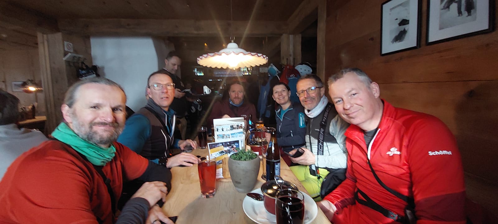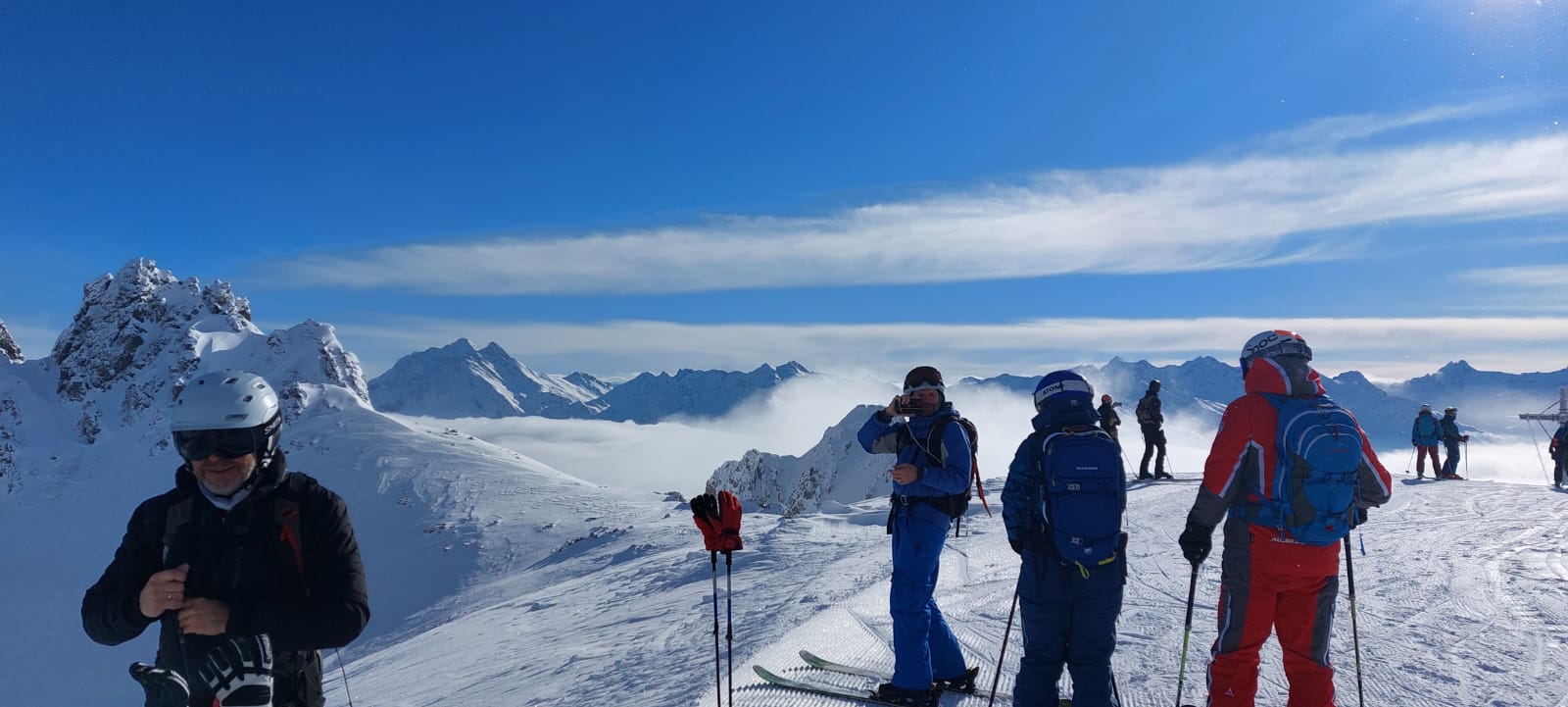 Der Freitag führt uns von Zürs aus in den frischen Pulverschnee zum Madloch, dem Stierloch, den Weissen Ring und über Lech und den Rüfikopf zurück nach Zürs. Viel Schnee ist es nicht, aber es staubt ordentlich. Mit dem Tagesverlauf wird die Sicht schlechter, von Bergpanorama bekommen wir deshalb nichts mit, aber das Schifahren ist dank der Tipps von Andreas lehrreich und den anderen in der Runde zuzuschauen bringt einiges.