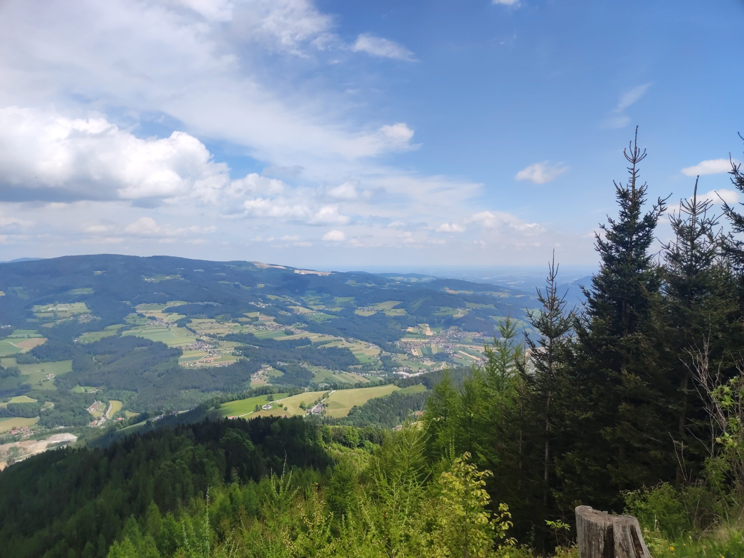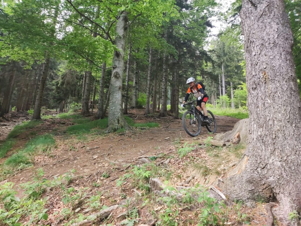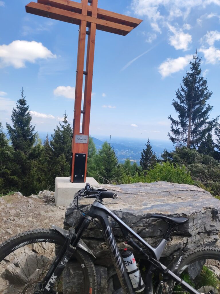 Zum zweiten Mal bewege ich mein Rad auf den Zetz. Oliver ist für eine Bewerbung in Weiz und wir nutzen die gemeinsame Zeit zum Radln und zum Quatschen. Wir nehmen den einfachen Aufstieg über Ponigl und dann die Forststraße vorbei an der Jagdhütte. Dann geht es einen großen Bogen zurück Richtung Eibisberg und nach dem letzten Zetzgipfel vorbei an den zwei Gipfel zurück zum Hohen Zetz. Das letzte Stück nehmen wir wieder den Wanderweg, nachdem wir kurz die Aussicht ins Feistritztal genossen haben. Das ist auch der Moment, wo der Austausch aufhört, weil am Singletrail kein Platz dafür ist. Bis dahin haben wir einen Plan für den nächsten Skitourenwinter gemacht, die weiteren Wochen vor der „Sommerpause“ besprochen und unsere Befindlichkeiten und Entwicklungen der letzten Wochen durchbesprochen. Am Gipfel gibt es eine letzte Pause und dann fliegen wir den Willisteig hinunter. Ein paar Mal müssen wir vom Rad, weil wir über die umgestürtzen Bäume im Steilen keine Bunnyhop machen wollen (oder können ;-) und nach dem Wittgruberhof geht es flowig zurück nach Trennstein und Büchl. Zuhause gibt es dann frischen Salat, die Sonne scheint nach wie vor. Nur ich bin etwas k.o. nach der Tour.