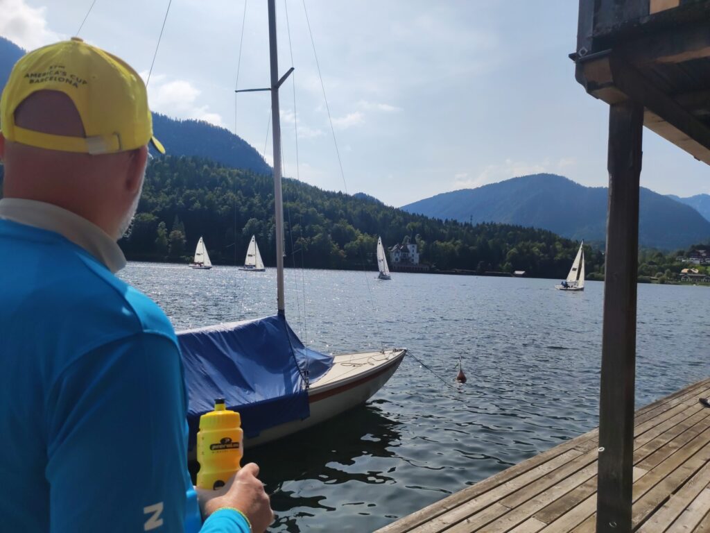 Das erste Mal führe ich das geländegängige Rennrad aus. Nachdem wir wegen der Segellandesliga am Grundlsee sind, tue ich es hier. Von Grundlsee geht es nach Gößl über den Salzkammergut-Radweg hinauf zum Ursprung der Salza und der Salza Alm. Der Anstieg ist relativ steil und mit frischen Beinen gerade noch gut zu fahren. Bergab geht es dann über zehn Kilometer Schotterstraße völlig durchgeschüttelt nach Bad Mitterdorf und von dort über Nebenstraßen und Wege nach Kainisch. Von dort fahre ich noch einmal ein paar Höhenmeter hinauf zum Radlingpass. Da geht es nicht mehr ganz so flott, dafür läuft das Rad dann fast bis in den Ort Grundlsee, um Ladislaus noch bei der Regatta zuzusehen. Heute liefert das Windrocker-Team sehr solide Wettfahrten ab und beenden den Tag mit vier zweiten und einem dritten Platz bei den Flights und liegen in der Gesamtwertung auf Rang 8. Nach zwei Stunden Fahrtzeit bin ich wieder im Haus und hinter mir liegen 40 Km und fast 800 Höhenmeter.
