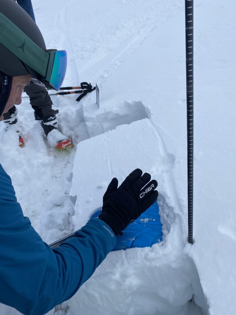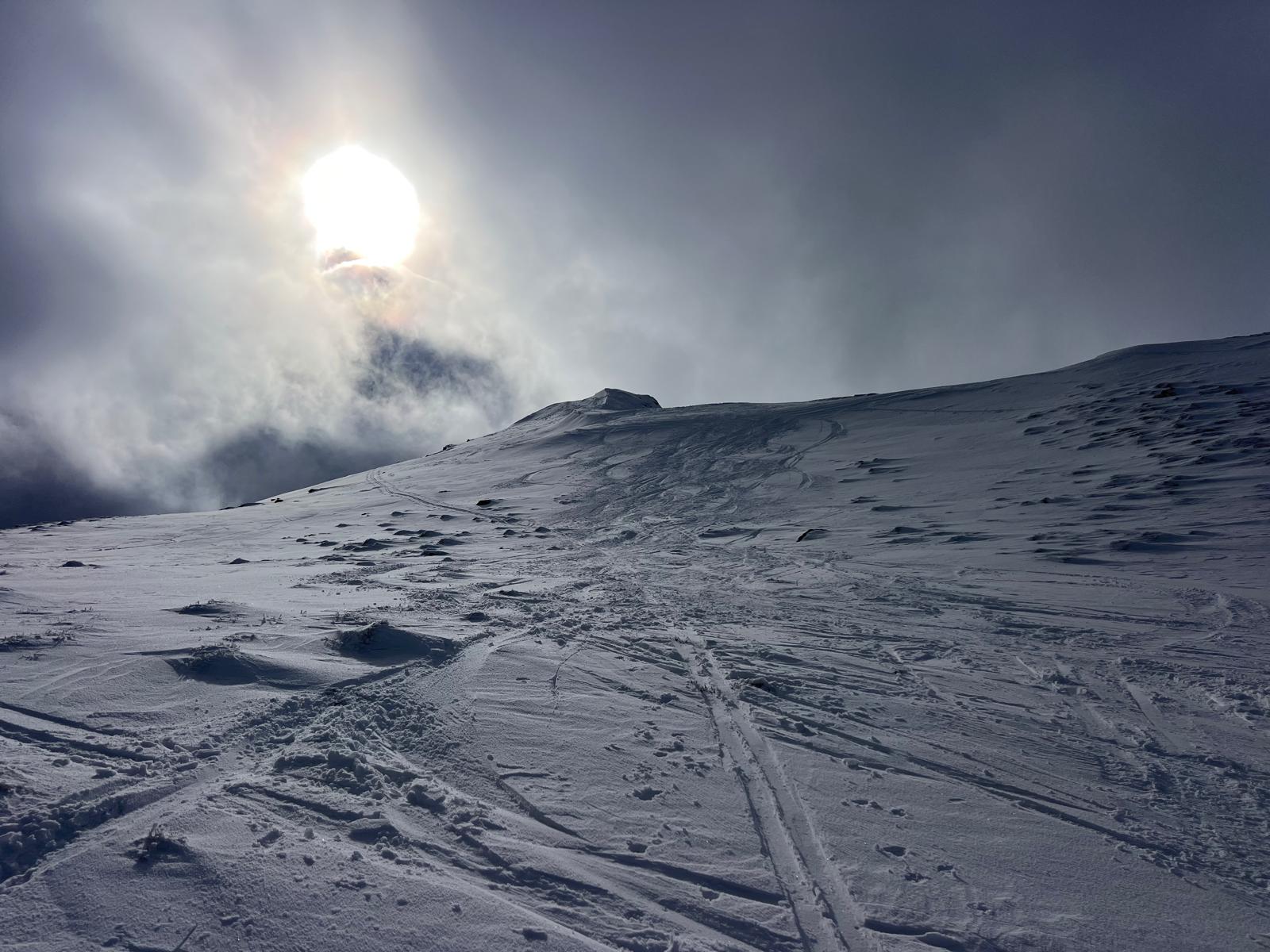 Das Altschneeproblem besteht (Schwachschichten, Setzungsgeräusche, …) in den Nordwest bis Nordost Sektoren nach wie vor! Auf der Südseite sind einige Zentimeter starke Schwimmschnee unter nur teilweise tragendem Harschdeckel. Da heisst es konsequent unter 30 Grad bleiben!