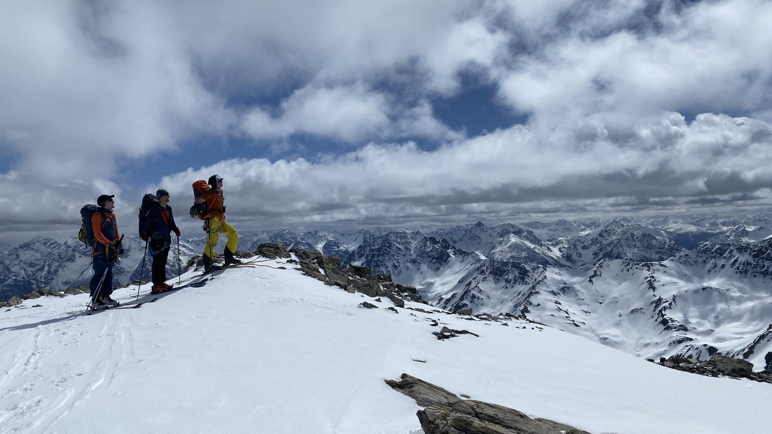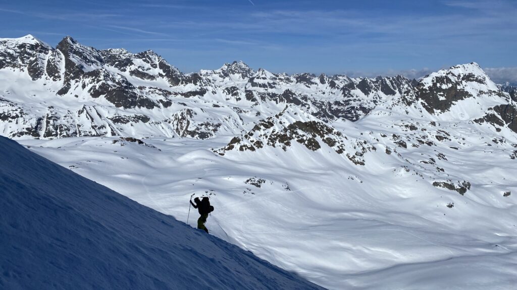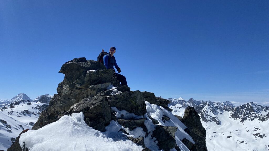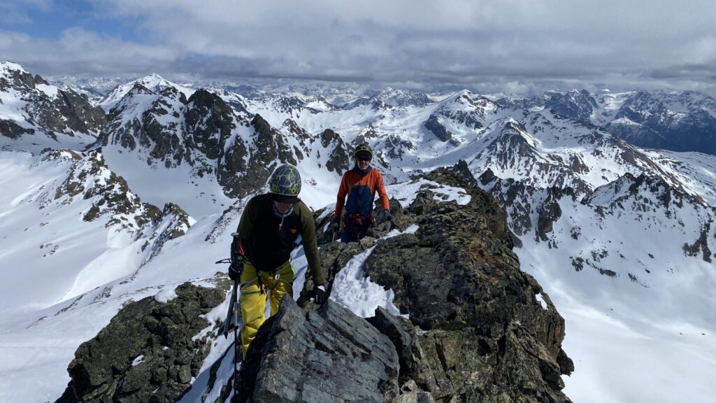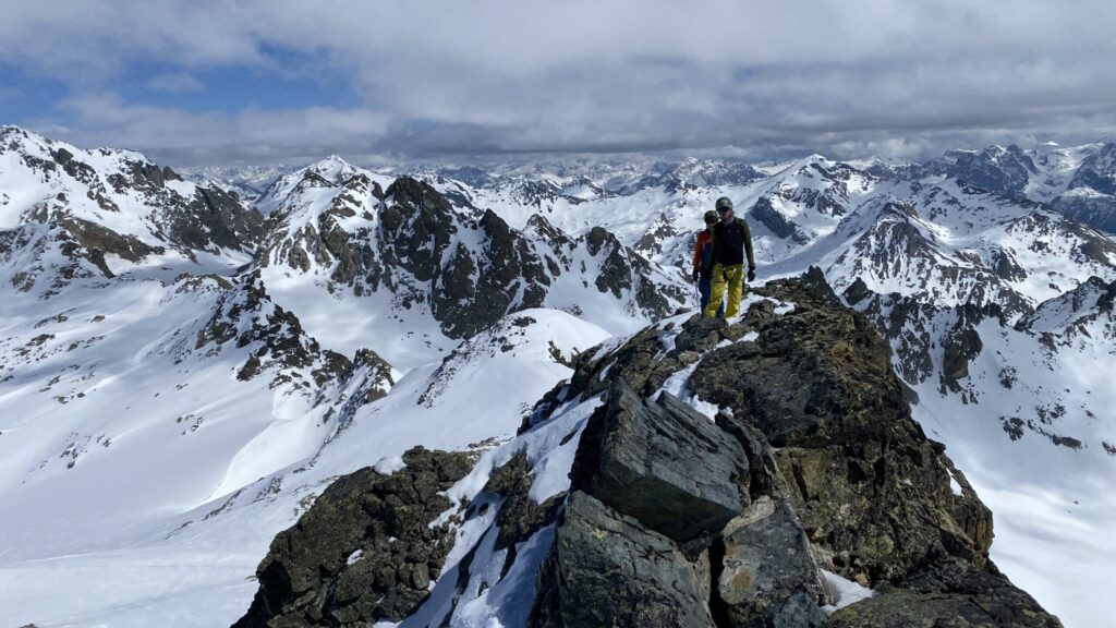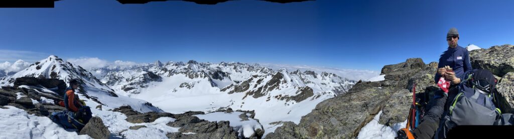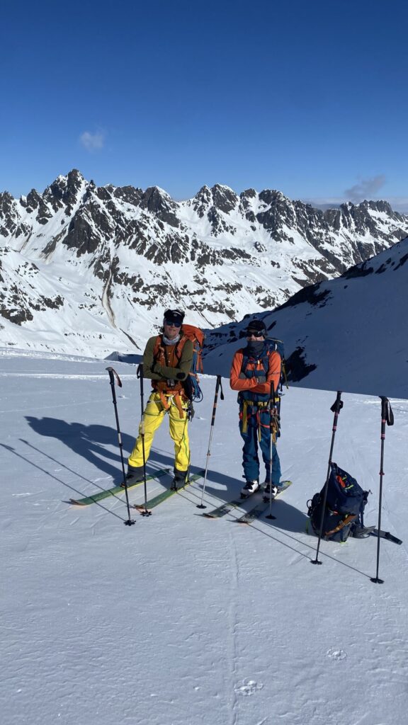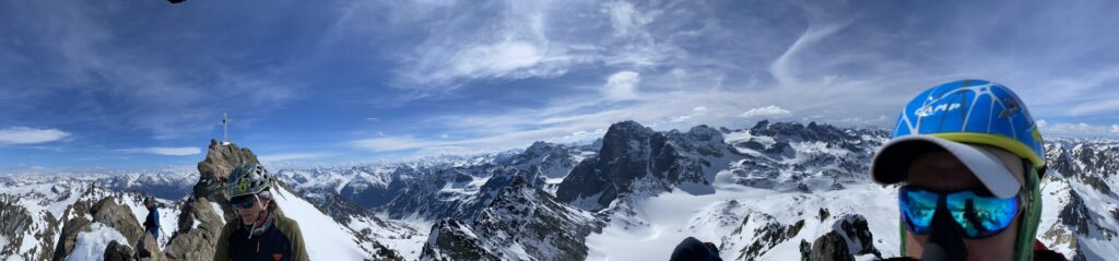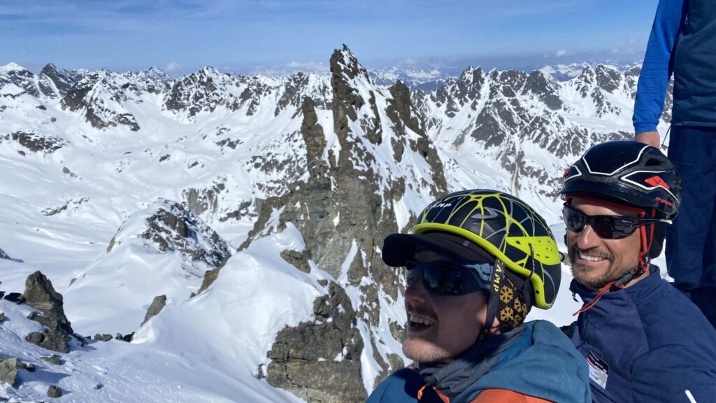 Danke für die sieben Tage im Herzen der Silvretta, die Wolfgang schon vor Jahren so perfekt organisiert und geplant hat. Die Sterntouren sind angenehm entspannend und vermindert den Druck. Wir sind trotzdem voll auf unsere Kosten gekommen, wenn man vom Piz Buin absieht, den wir nicht geschafft haben, weil das Wetter am Anfang dafür einfach nicht mitgespielt hat und vom Jamtal aus die Tour einfach zu weit gewesen wäre. Es sind über 7000 Höhenmeter und acht Dreitausender zusammengekommen. Die Überschreitungen waren lässig und wir haben wieder einiges an Erfahrungen gesammelt. Der Abenteuer Faktor war diesmal für mich insgesamt mit den vielen steilen Kletterstellen, dem Abseilen und den teilweise rassigen Abfahrten hoch. Das Skifahren haben wir auf den gut geneigten Gletscherhängen voll ausgekostet und der Schnee war durchwegs sehr gut.