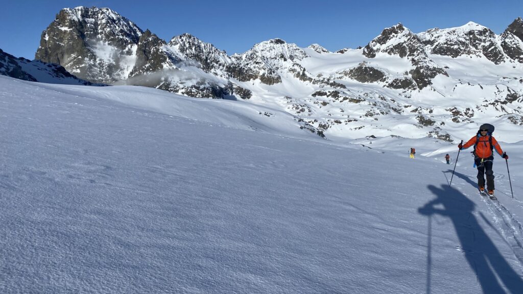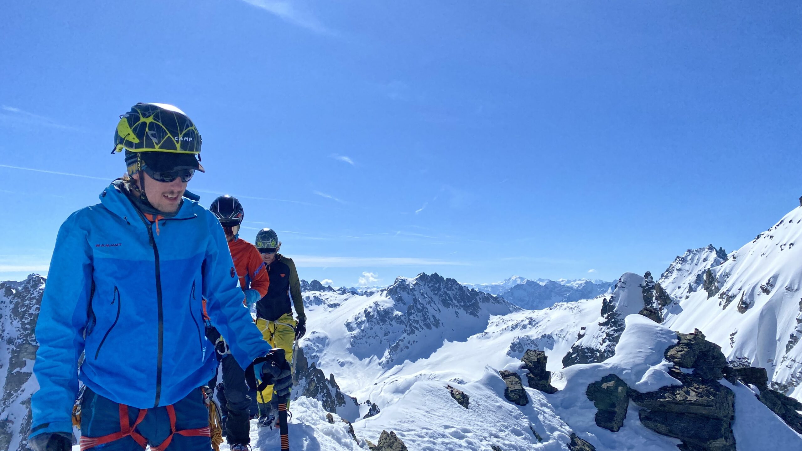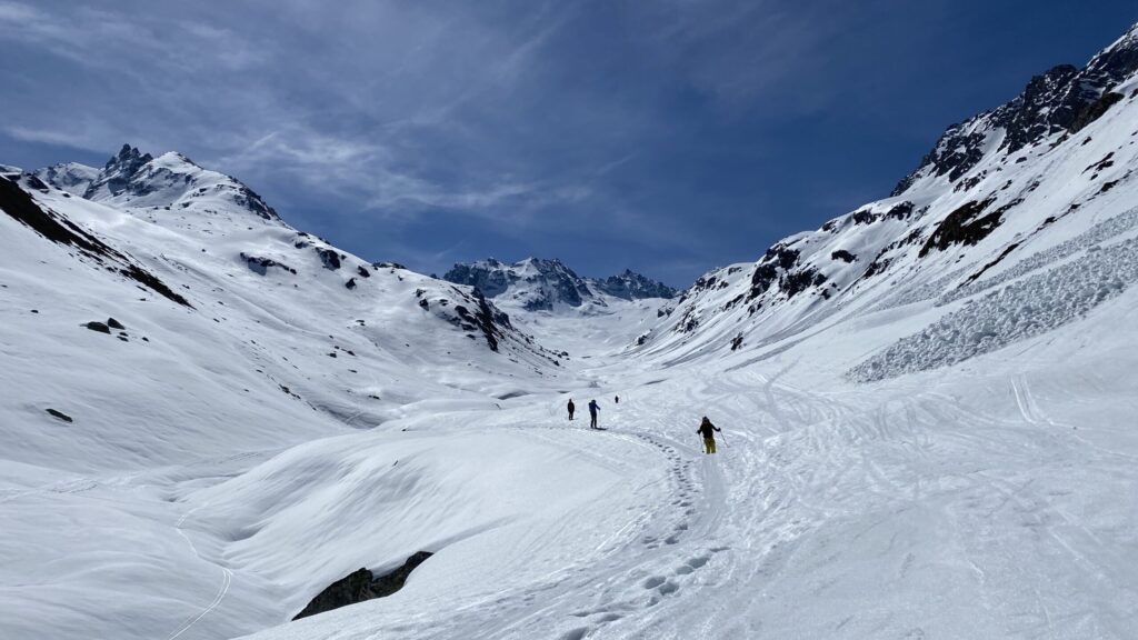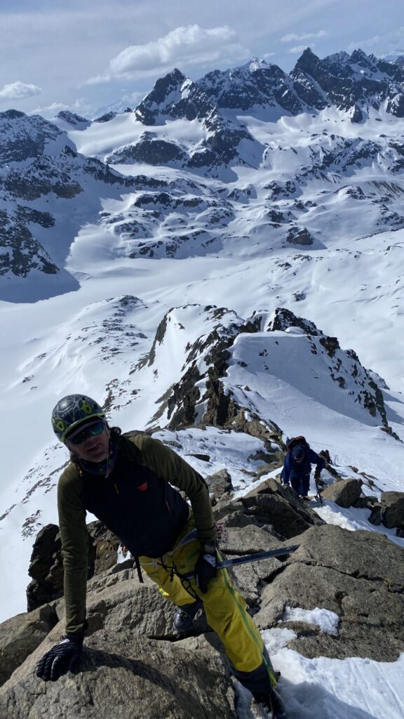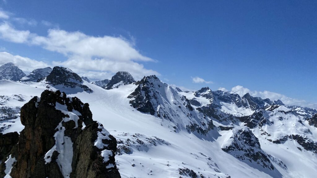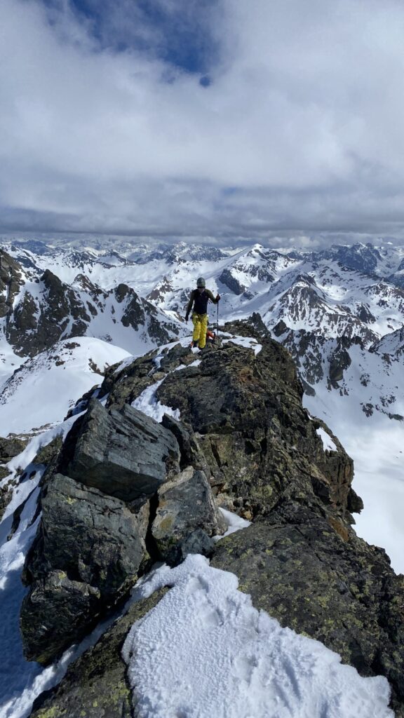 Danke für die sieben Tage im Herzen der Silvretta, die Wolfgang schon vor Jahren so perfekt organisiert und geplant hat. Die Sterntouren sind angenehm entspannend und vermindert den Druck. Wir sind trotzdem voll auf unsere Kosten gekommen, wenn man vom Piz Buin absieht, den wir nicht geschafft haben, weil das Wetter am Anfang dafür einfach nicht mitgespielt hat und vom Jamtal aus die Tour einfach zu weit gewesen wäre. Es sind über 7000 Höhenmeter und acht Dreitausender zusammengekommen. Die Überschreitungen waren lässig und wir haben wieder einiges an Erfahrungen gesammelt. Der Abenteuer Faktor war diesmal für mich insgesamt mit den vielen steilen Kletterstellen, dem Abseilen und den teilweise rassigen Abfahrten hoch. Das Skifahren haben wir auf den gut geneigten Gletscherhängen voll ausgekostet und der Schnee war durchwegs sehr gut.