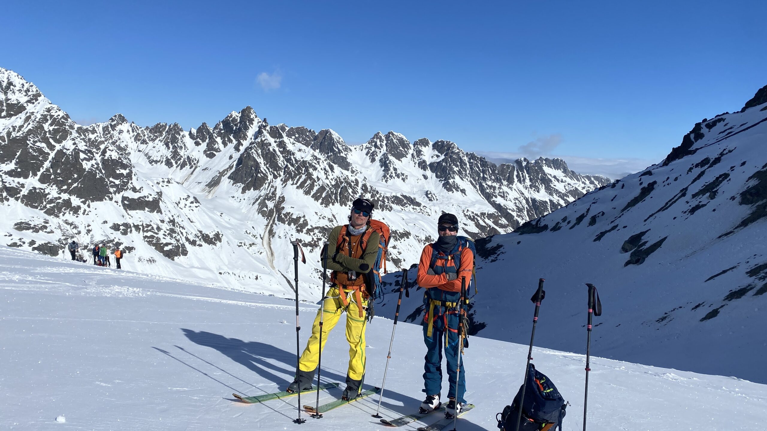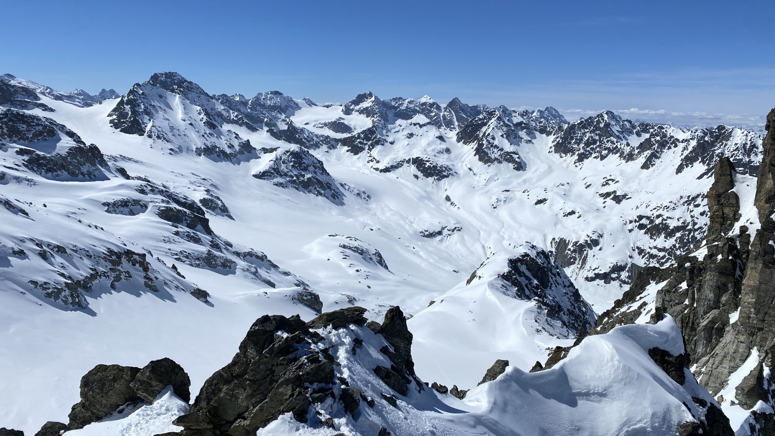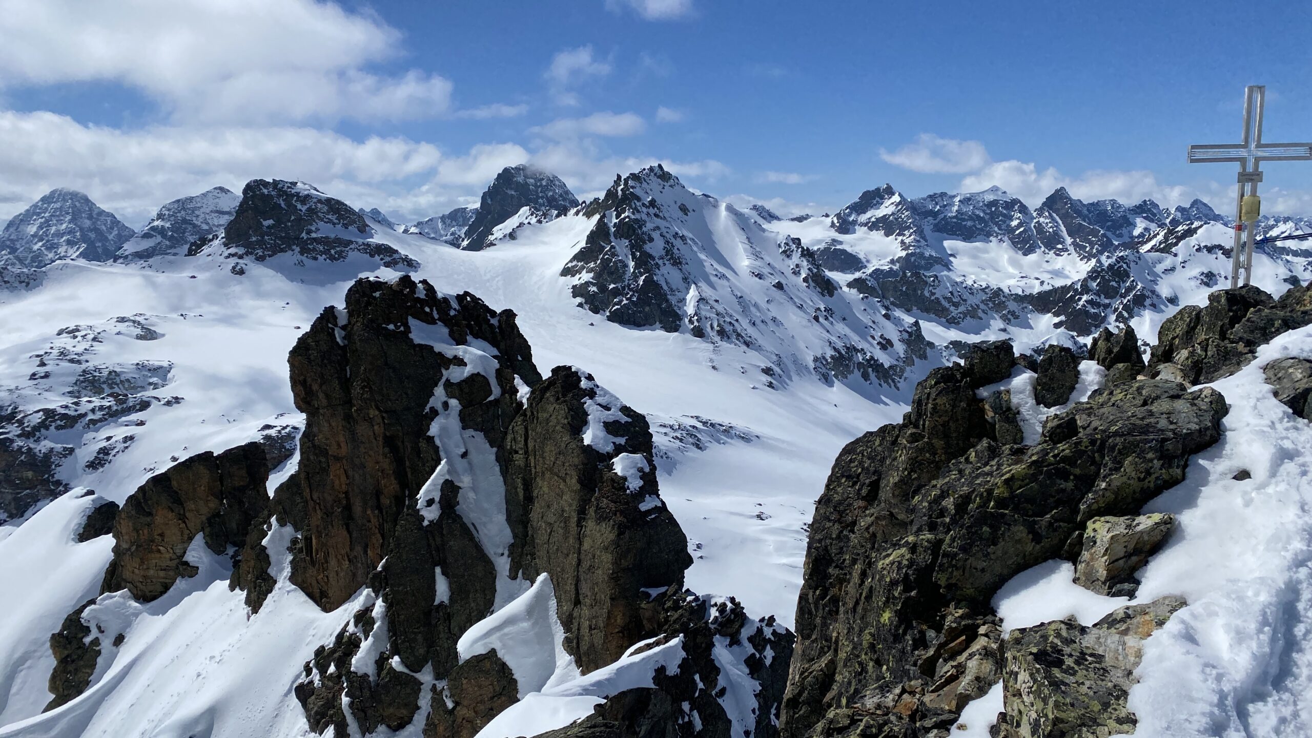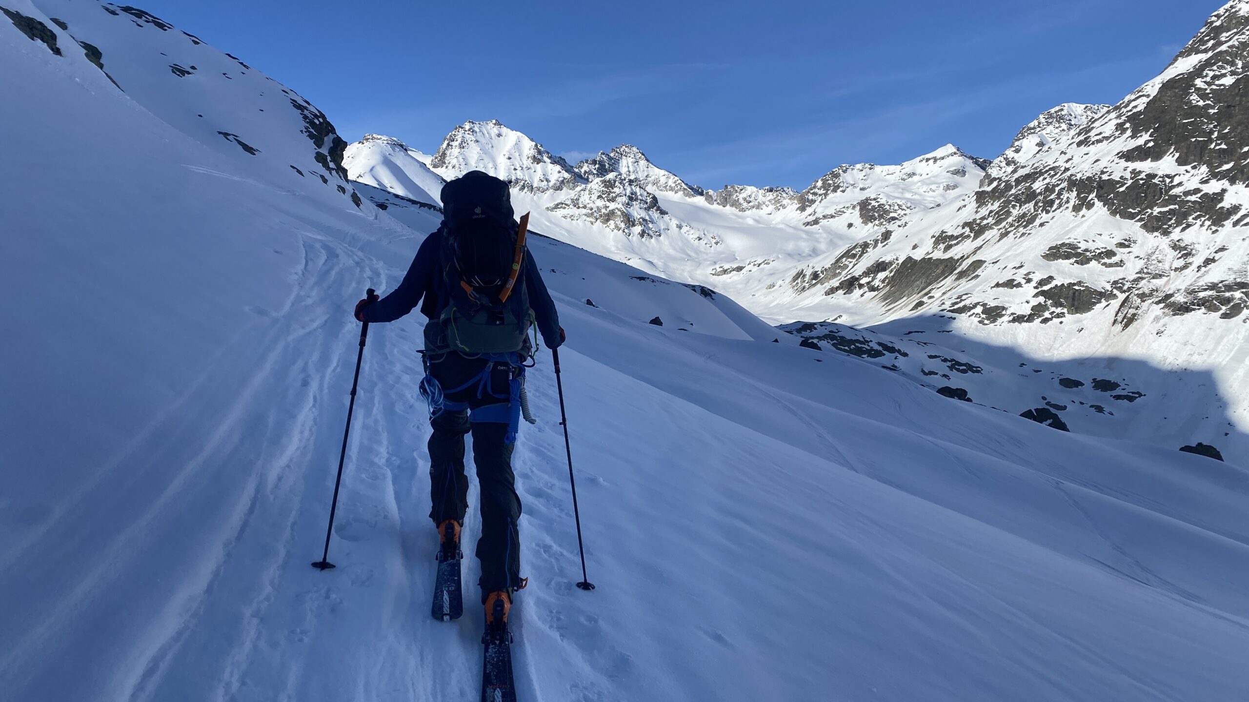 Danke für die sieben Tage im Herzen der Silvretta, die Wolfgang schon vor Jahren so perfekt organisiert und geplant hat. Die Sterntouren sind angenehm entspannend und vermindert den Druck. Wir sind trotzdem voll auf unsere Kosten gekommen, wenn man vom Piz Buin absieht, den wir nicht geschafft haben, weil das Wetter am Anfang dafür einfach nicht mitgespielt hat und vom Jamtal aus die Tour einfach zu weit gewesen wäre. Es sind über 7000 Höhenmeter und acht Dreitausender zusammengekommen. Die Überschreitungen waren lässig und wir haben wieder einiges an Erfahrungen gesammelt. Der Abenteuer Faktor war diesmal für mich insgesamt mit den vielen steilen Kletterstellen, dem Abseilen und den teilweise rassigen Abfahrten hoch. Das Skifahren haben wir auf den gut geneigten Gletscherhängen voll ausgekostet und der Schnee war durchwegs sehr gut.