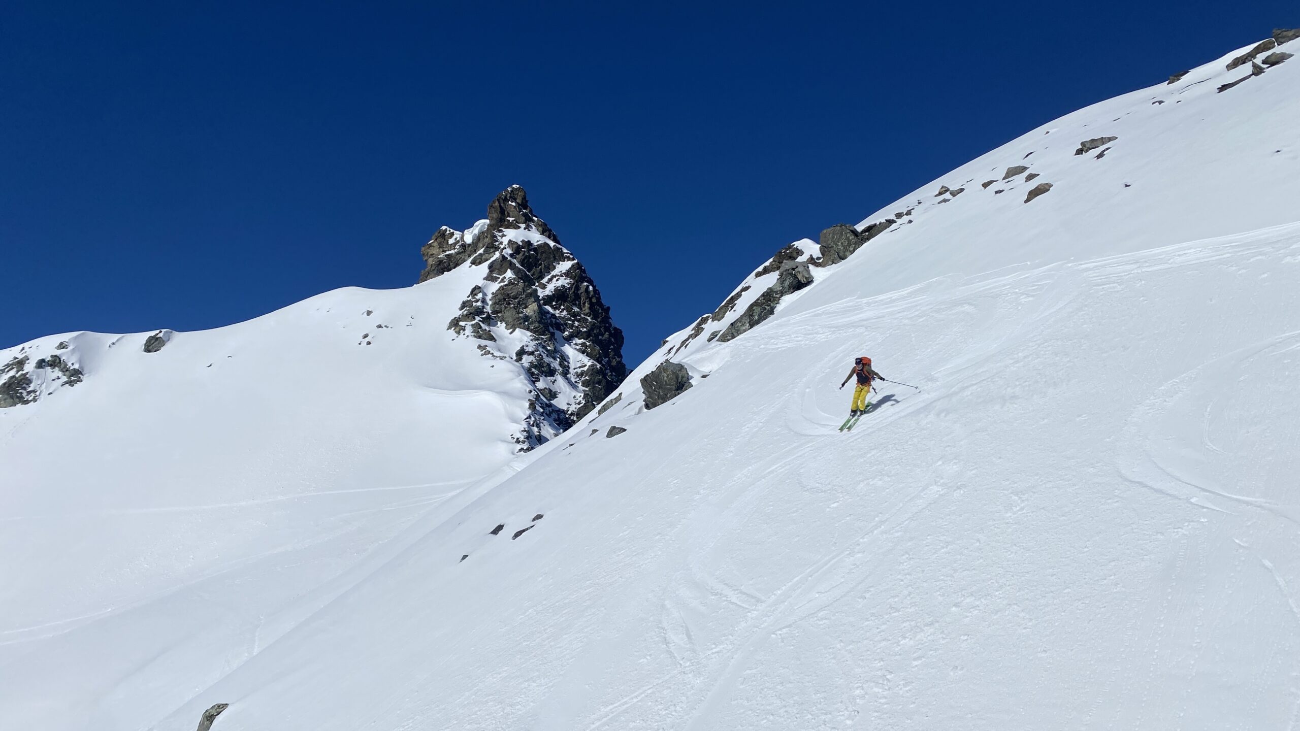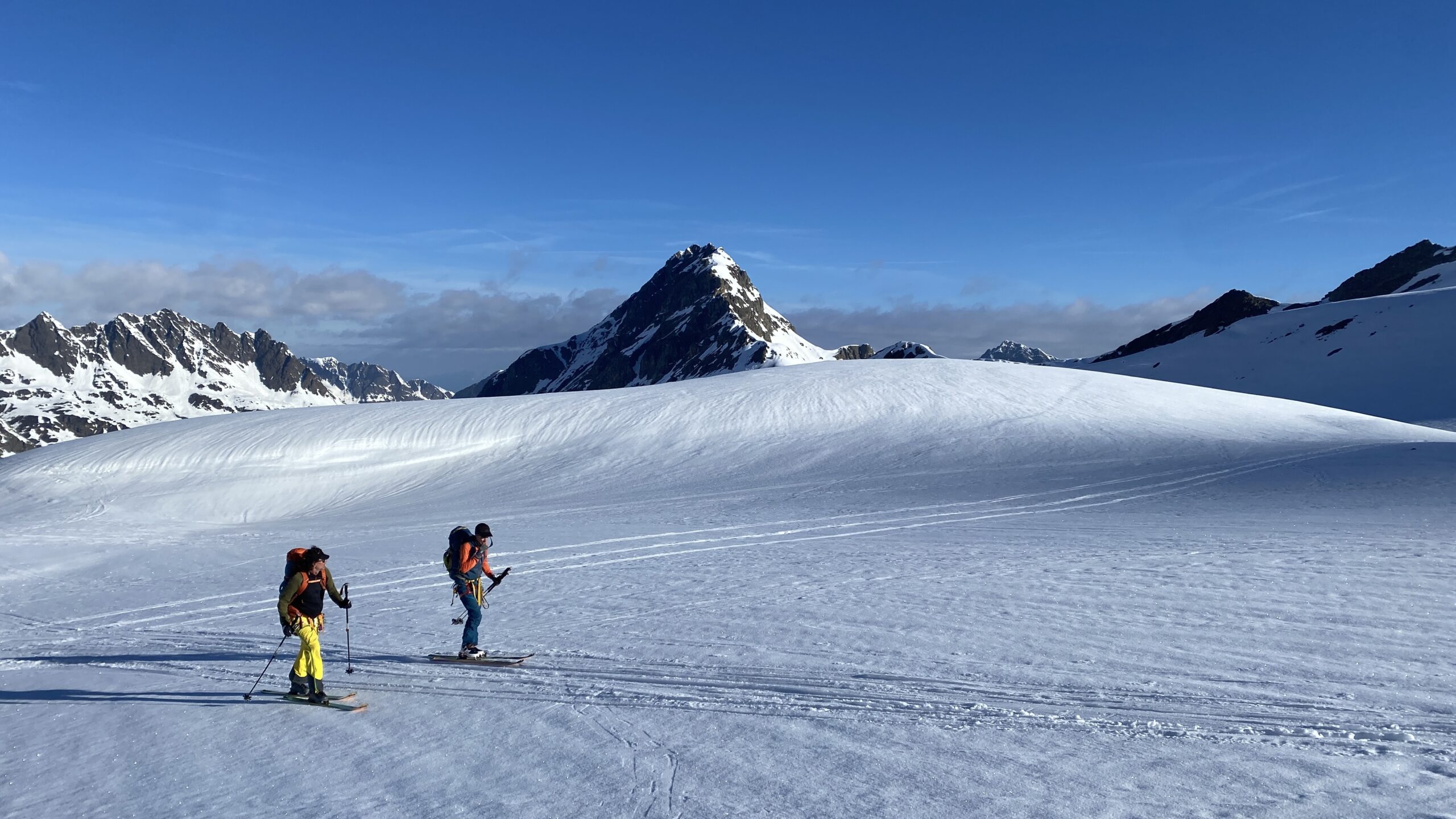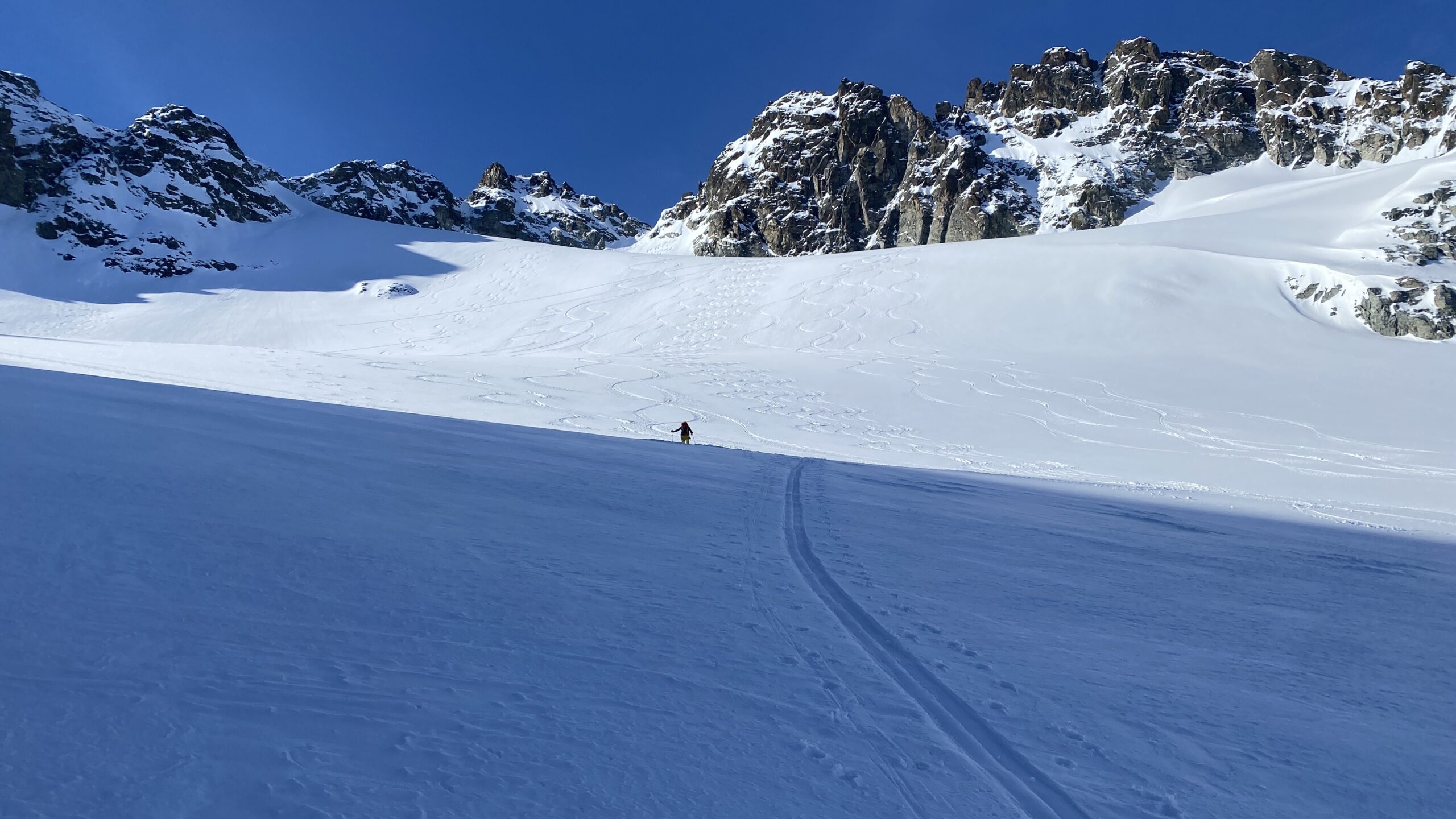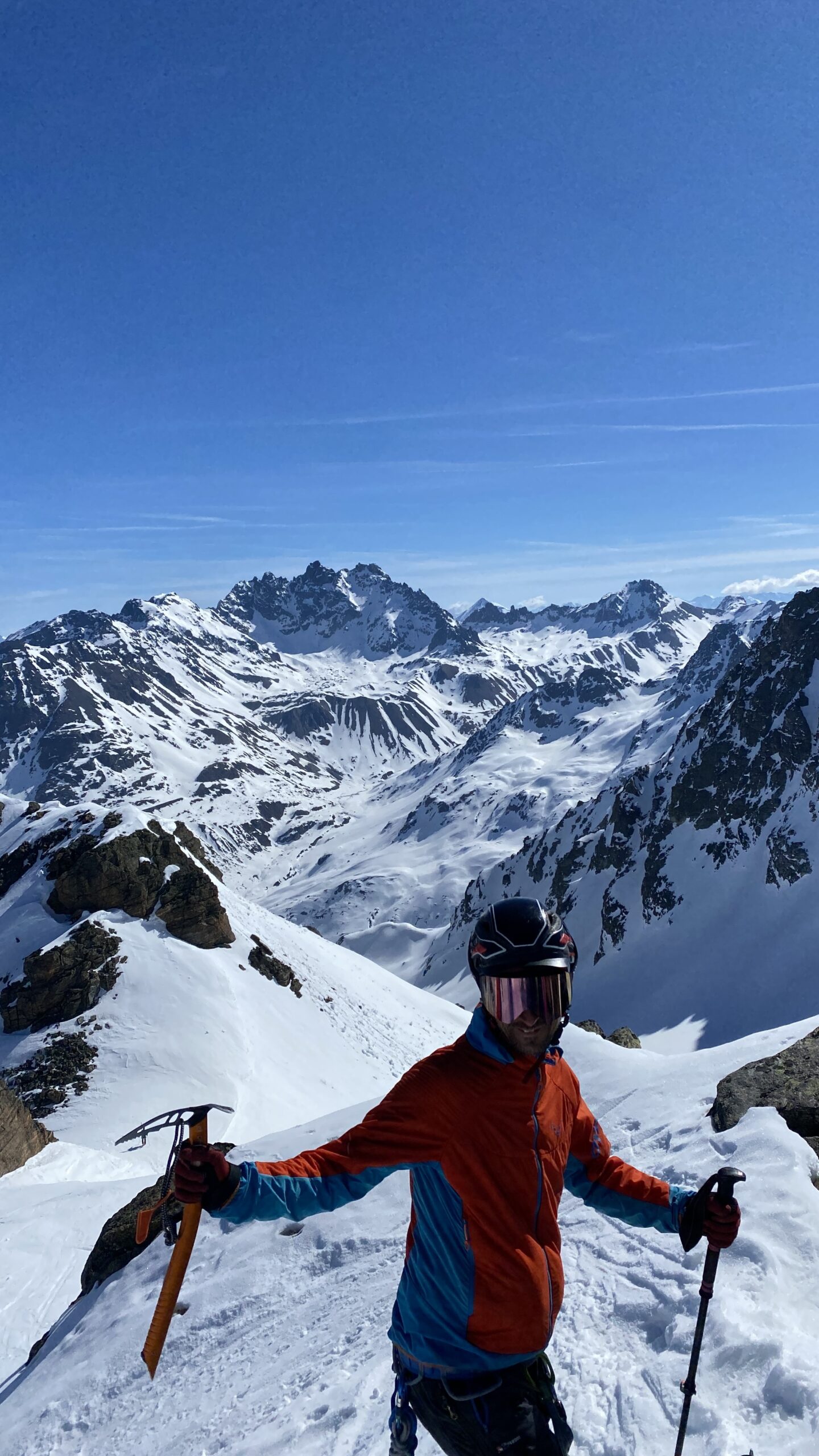 Danke für die sieben Tage im Herzen der Silvretta, die Wolfgang schon vor Jahren so perfekt organisiert und geplant hat. Die Sterntouren sind angenehm entspannend und vermindert den Druck. Wir sind trotzdem voll auf unsere Kosten gekommen, wenn man vom Piz Buin absieht, den wir nicht geschafft haben, weil das Wetter am Anfang dafür einfach nicht mitgespielt hat und vom Jamtal aus die Tour einfach zu weit gewesen wäre. Es sind über 7000 Höhenmeter und acht Dreitausender zusammengekommen. Die Überschreitungen waren lässig und wir haben wieder einiges an Erfahrungen gesammelt. Der Abenteuer Faktor war diesmal für mich insgesamt mit den vielen steilen Kletterstellen, dem Abseilen und den teilweise rassigen Abfahrten hoch. Das Skifahren haben wir auf den gut geneigten Gletscherhängen voll ausgekostet und der Schnee war durchwegs sehr gut.